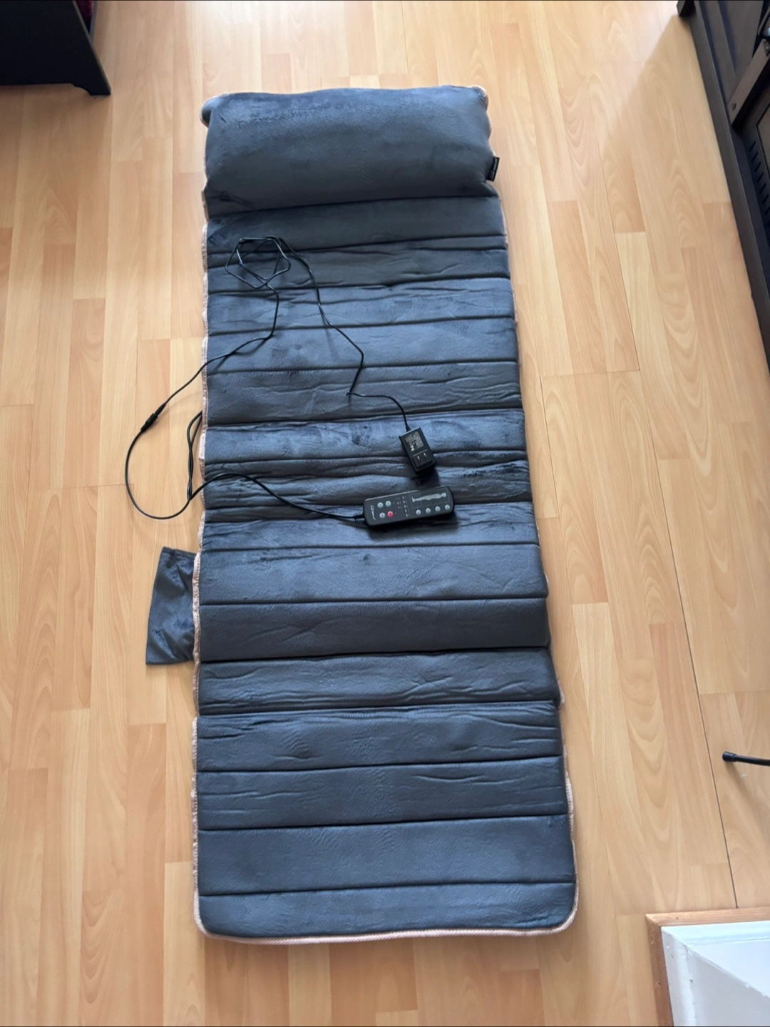 Full body heat/vibration massage pad. Plush memory foam. Has a pillow built in for your head. Full body massager that is great for neck, back, waist and legs.