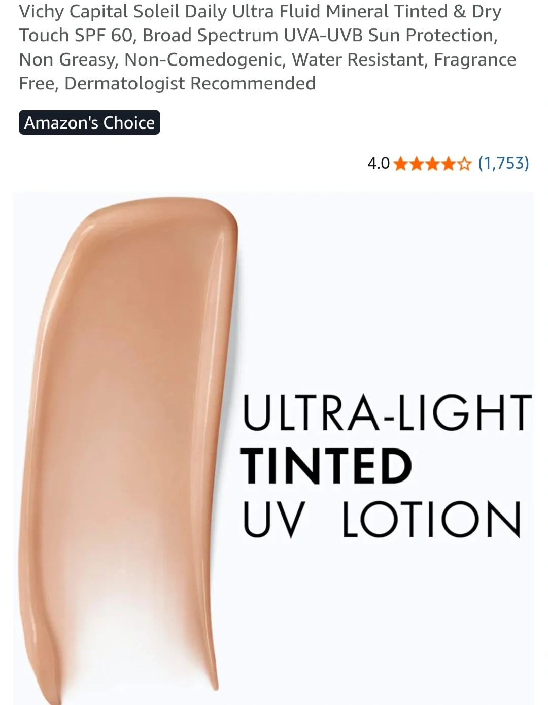 This is Vichy Capital Soleil Ultra-Light Tinted UV Lotion with SPF 60. It's mineral-based and offers high broad-spectrum protection. Used for a week - 85% product left