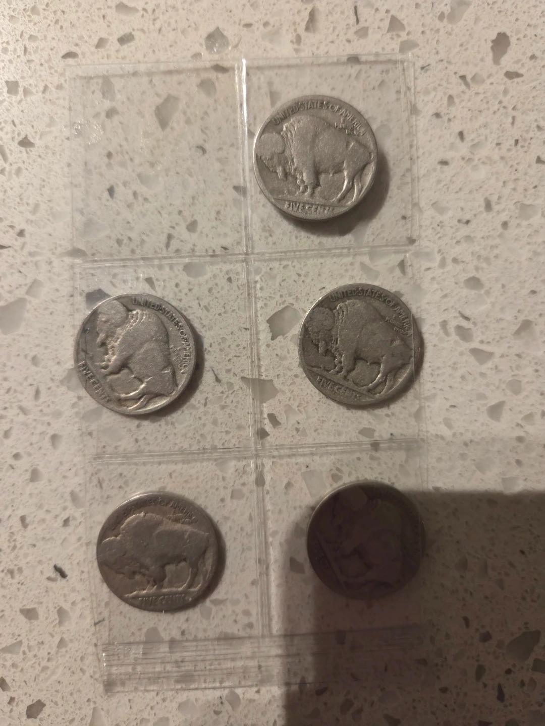 Collection of Buffalo Nickel coins, each representing five cents. These coins are made of metal and feature classic American imagery. They're suitable for collectors or as unique pocket change. 25$ for all the coins