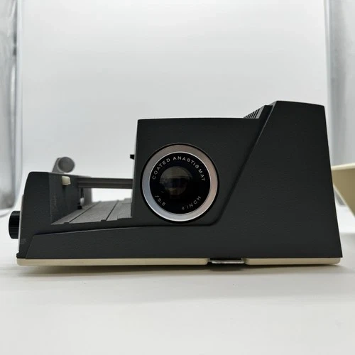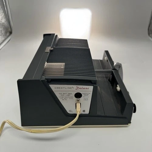 Step back in time with the Crestline Deluxe Slide Projector, a classic piece of equipment designed for the avid photographer or collector. This vintage unit, originating from the United States, offers a touch of nostalgia with its portable and table top projection features, making it an ideal centerpiece for your vintage photography collection or home decor. The projector is compatible with 35 mm film slides and comes with its original box, power cord, and a single unit quantity to add to your collection. Whether it's for projection purposes or as a collectible item, this Crestline slide projector stands as a testament to the era of physical film and slide photography. Comes with original box and services receipts. Item has not been tested.