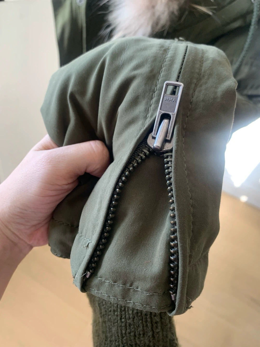 This piece is known for its tailored, slim-fit cut, making it more flattering than typical bulky parkas.