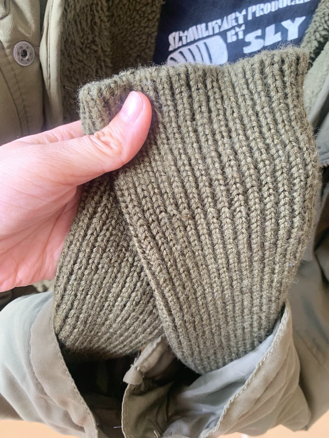 • Ribbed knit cuffs inside sleeves