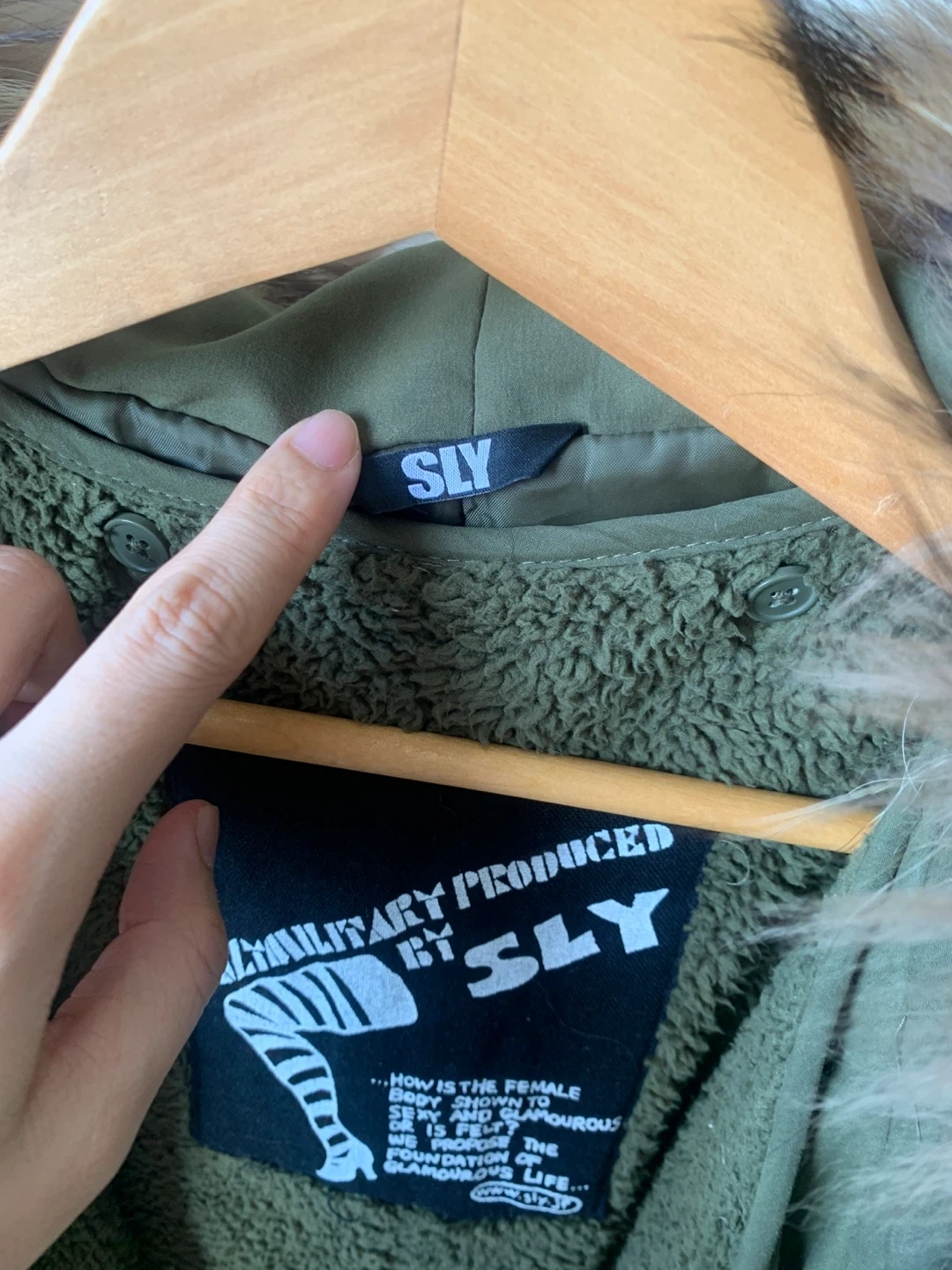SLY Japan parka jacket in a classic olive green tone.