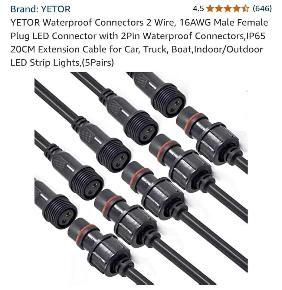 Useful: This male/female connector is a very useful accessory when installing waterproof LED lights.