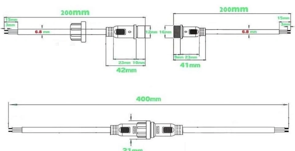 Specification: 2 pin male & female IP68 waterproof connectors with 16AWG wire.