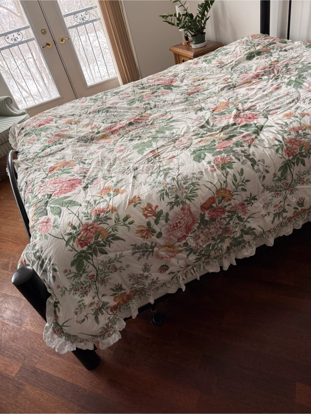 Floral Queen Size Comforter with Ruffled Edge
