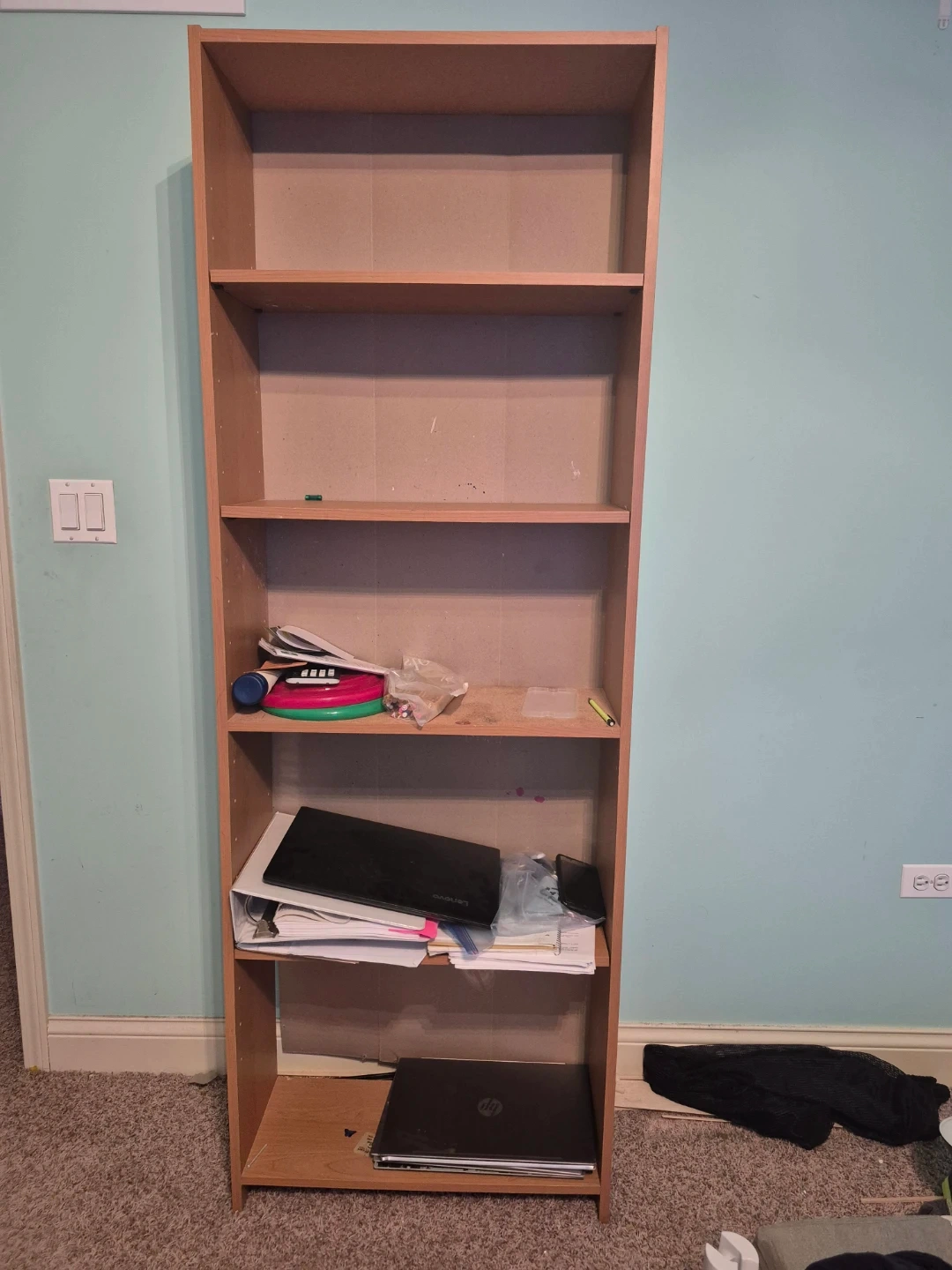 Selling a wooden bookcase. It's in good condition and ready for a new home. Perfect for storing books, displaying items, or organizing any room