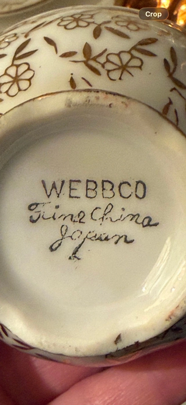 Buy & SellVintage Fine China PiecesVintage Fine China Pieces$25Webbco fine China made in Japan. Includes a teapot, creamer, and 3 cup with saucer sets. Feel free to message if you have any questions!WHERE TO MEETCheck LocationView MapSELLERRainyDaypplMadoc100 reviews0 chats·1 favorites·45 viewsSEND CHAT TO SELLERHi RainyDayppl! I’m interested in your listing.Hi RainyDayppl! I’m interested in your listing.Get the Karrot app to chatSign In to chat