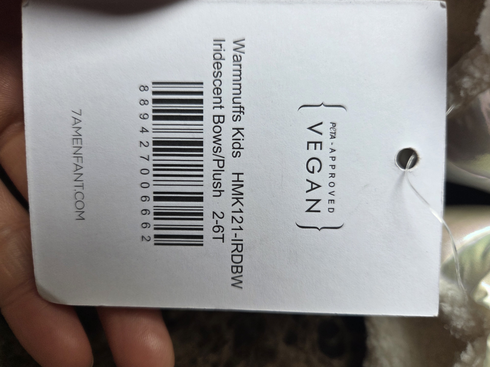 Brand New High Quality 7 a.m Warmmuffs Kids 2-6T. Vegan