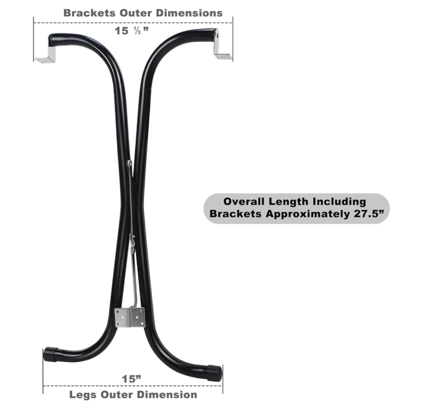 Selling a set of folding table legs, perfect for a DIY project or replacing damaged legs! They're black metal and measure about 27.5 inches in overall length, including the brackets. The brackets outer dimensions are 15 1/2 inches, and the legs outer dimension is 15 inches