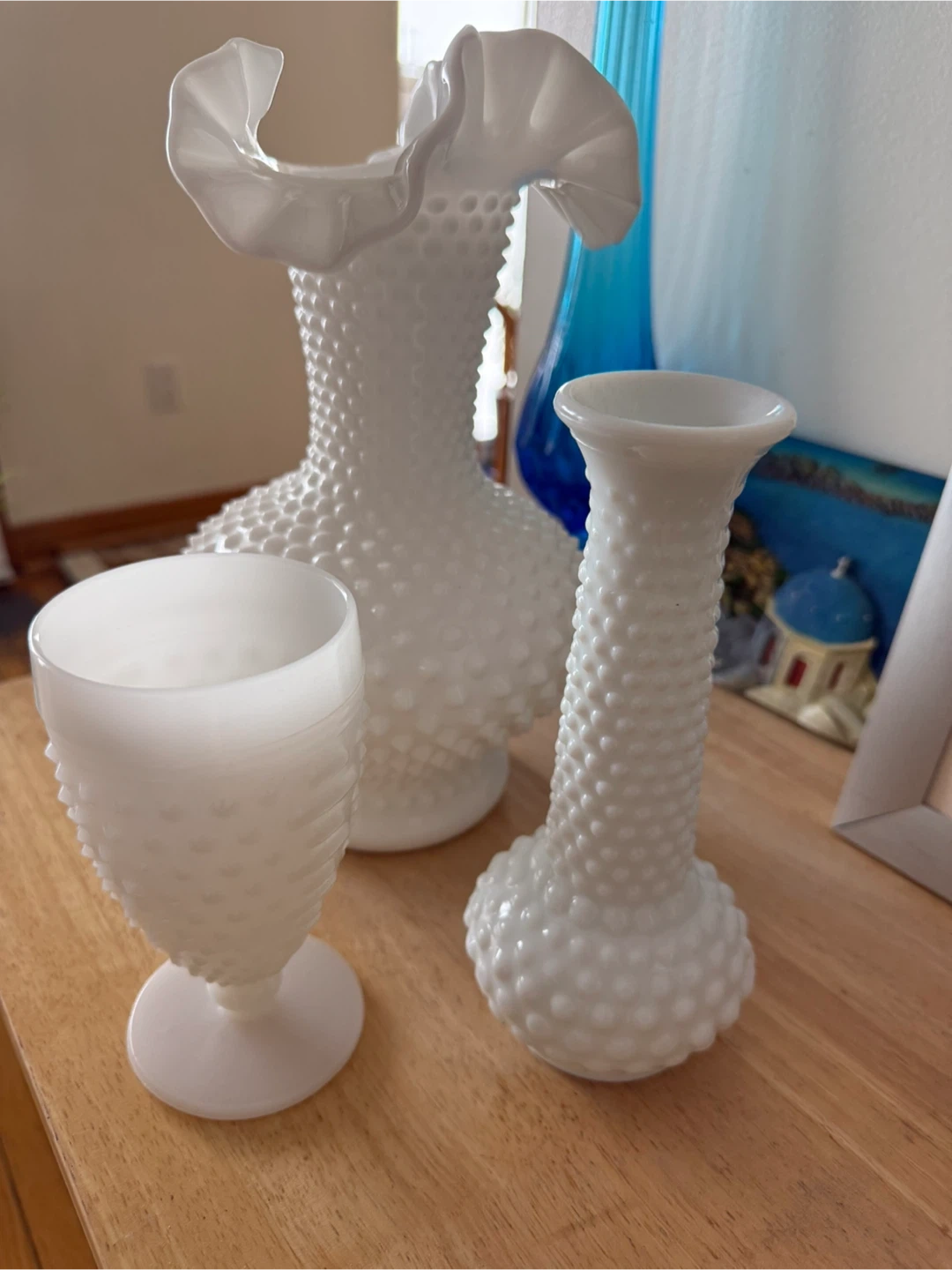 Set of 3 Hobnail Milk Glass Vases