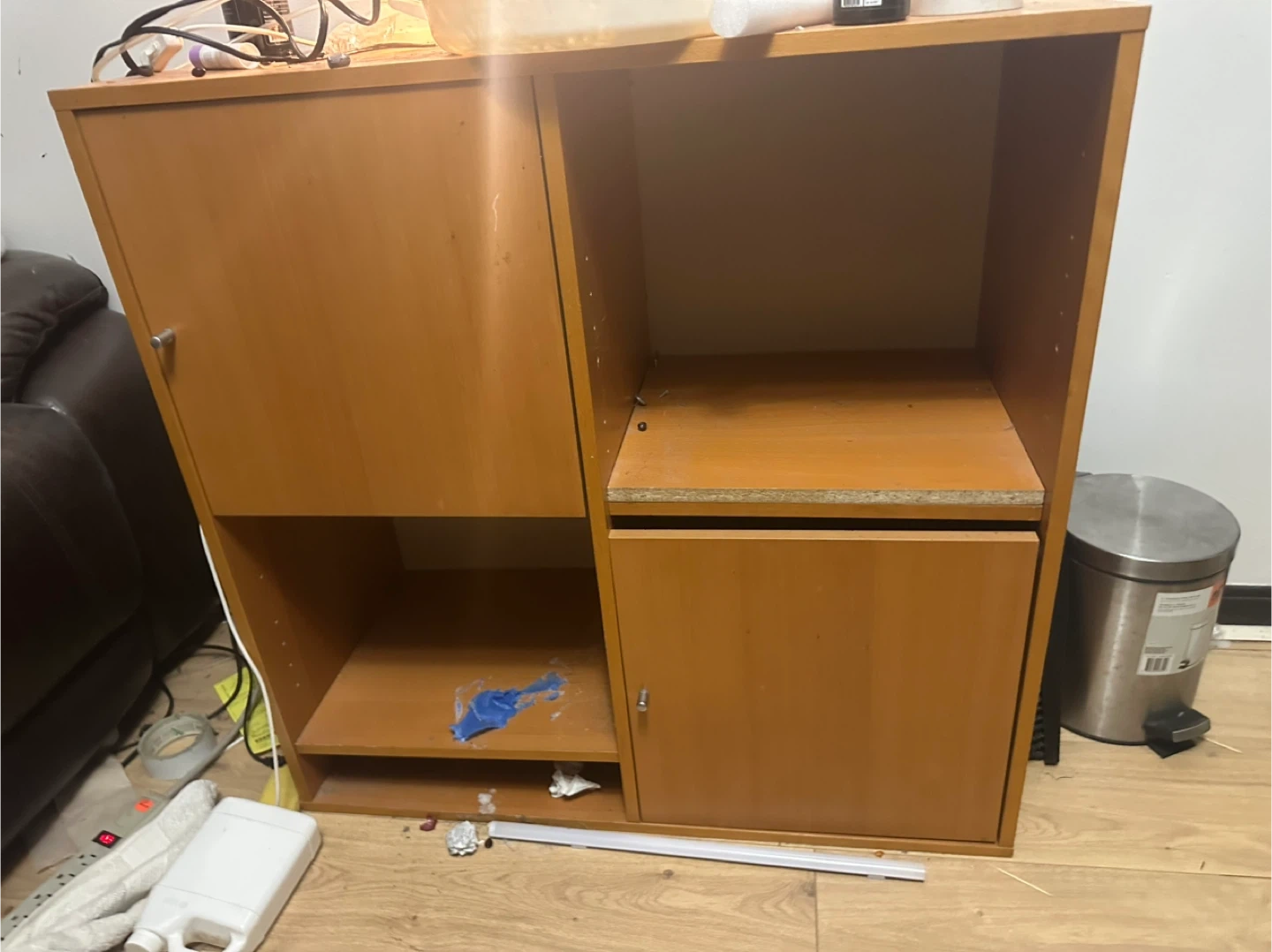 A versatile wooden storage cabinet featuring one door and multiple open shelves. It's great for organizing various items in any room. The unit's light wood finish complements most decor styles.