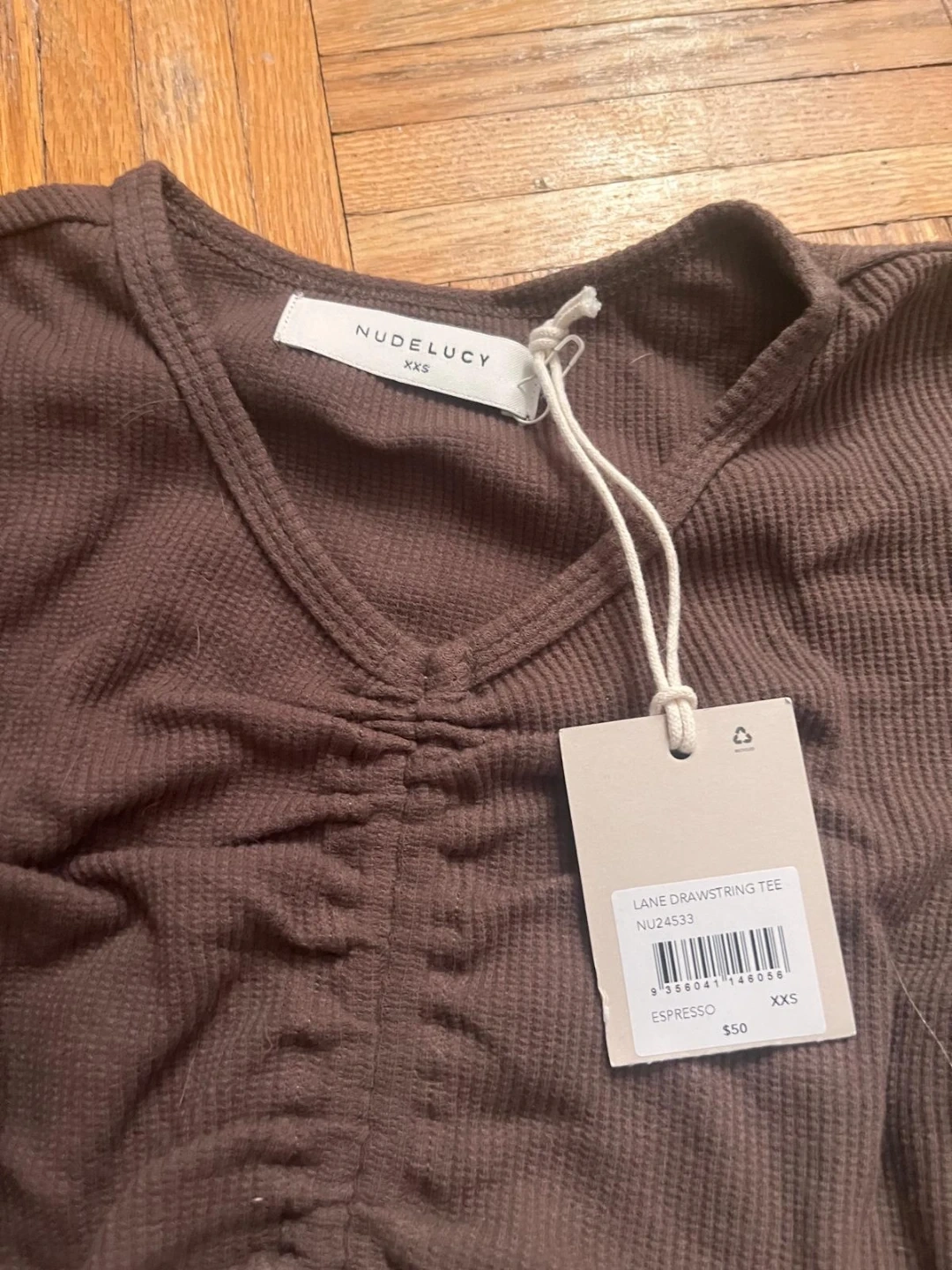 This is a Nude Lucy Lane Drawstring Tee in size XXS and the colour Espresso. It's in great condition and originally bought for $50. A super cute and comfy top to add to your wardrobe!