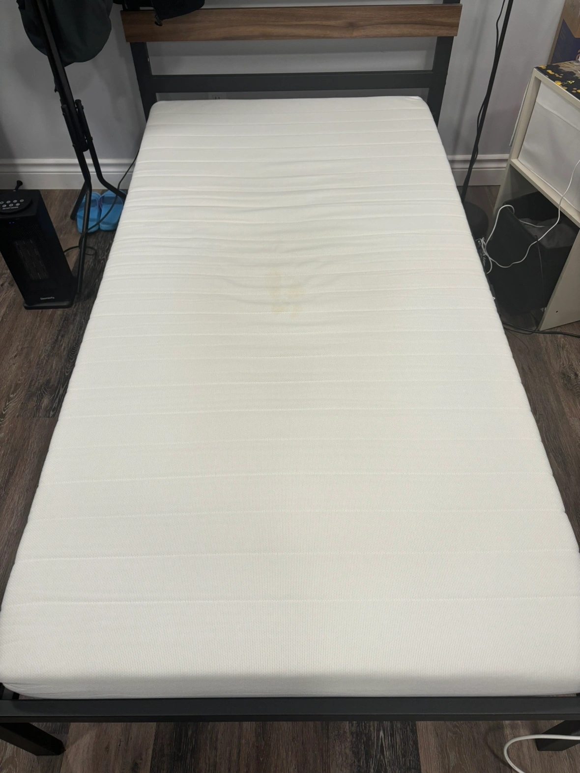 1 year used, with 2 fitted sheet (1 grey 1 dark blue)