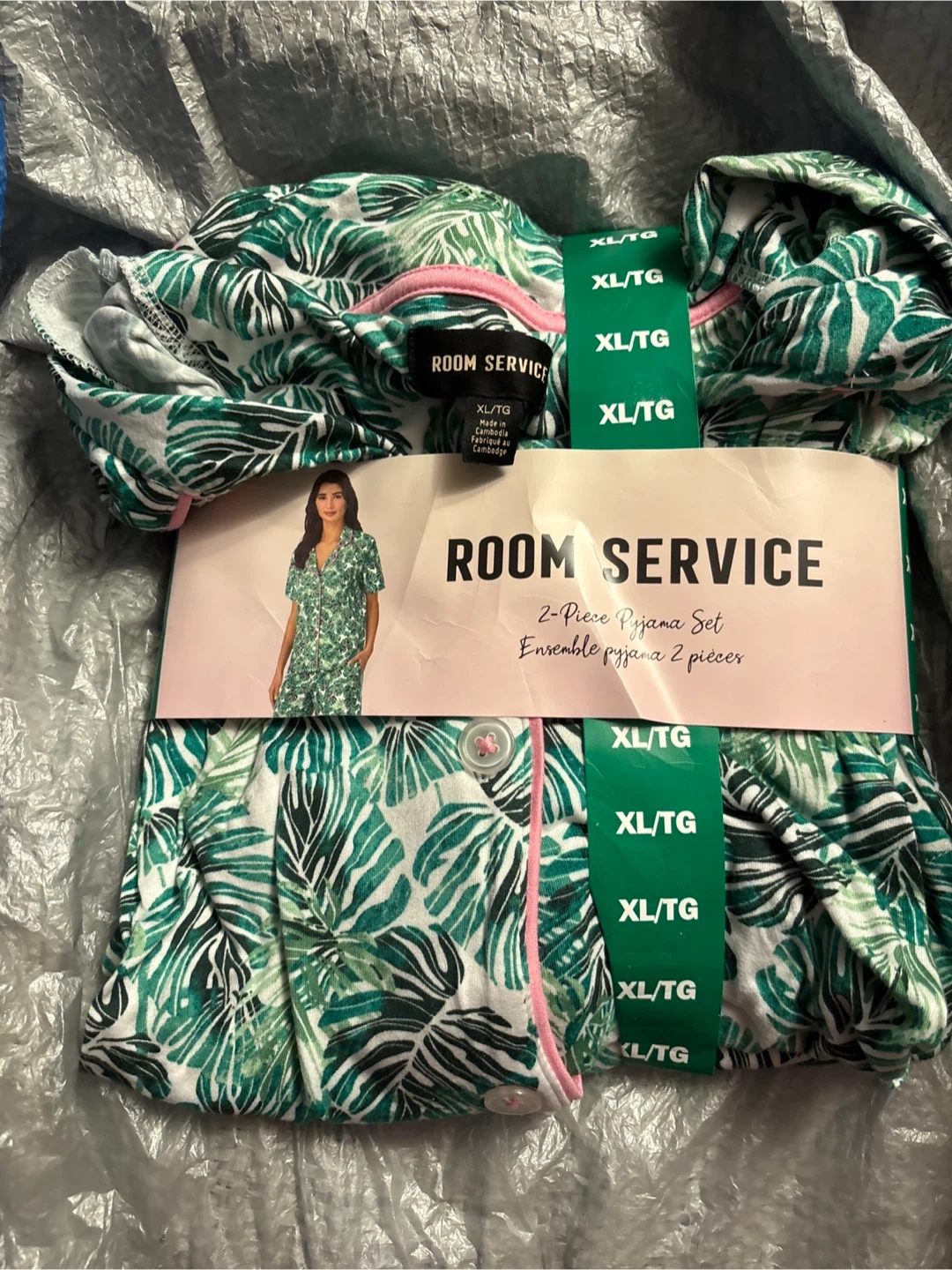 Room Service 2-Piece Pajama Set - Tropical Leaf Print - XL/TG