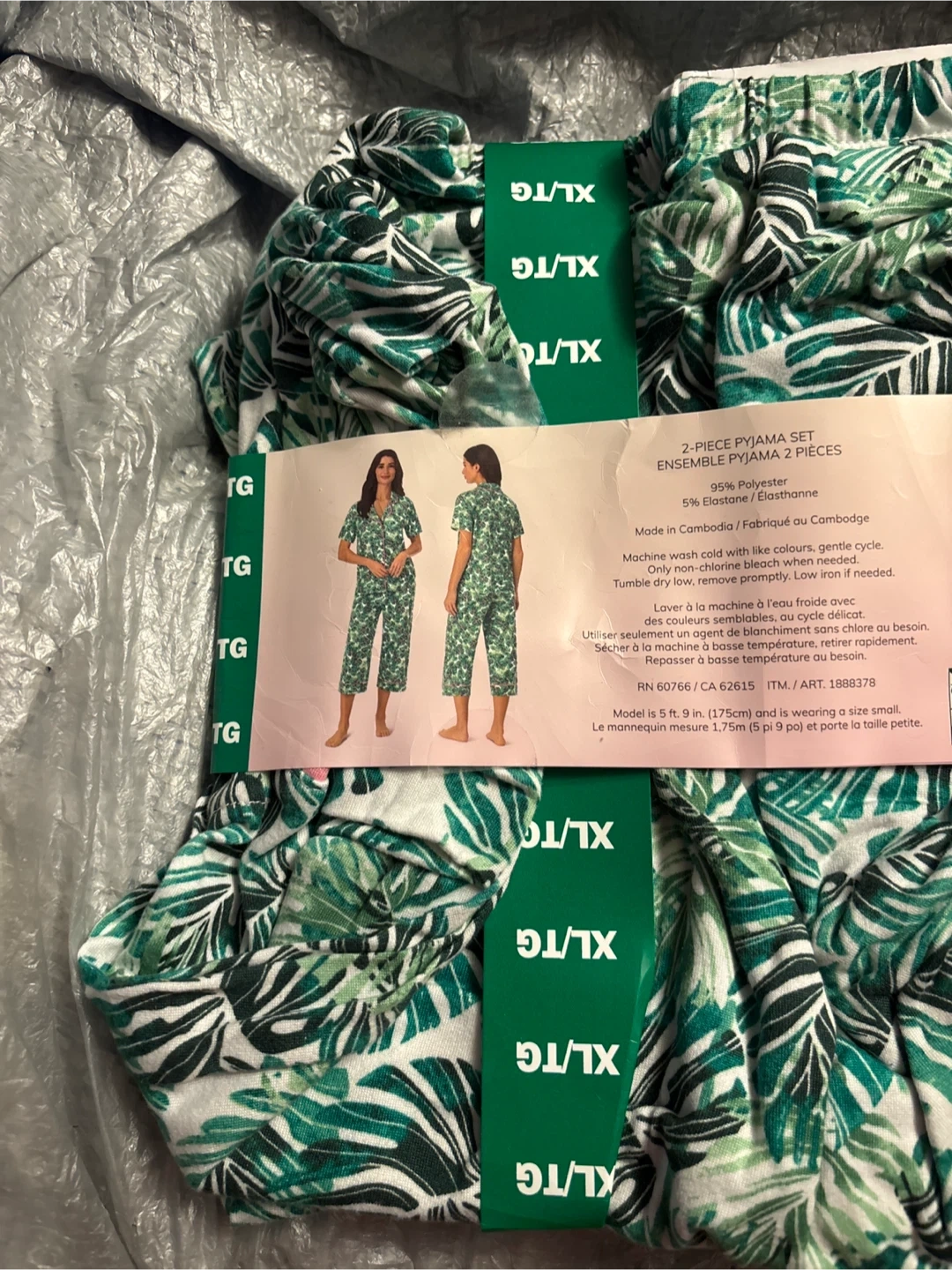 Room Service 2-Piece Pajama Set - Tropical Leaf Print - XL/TG