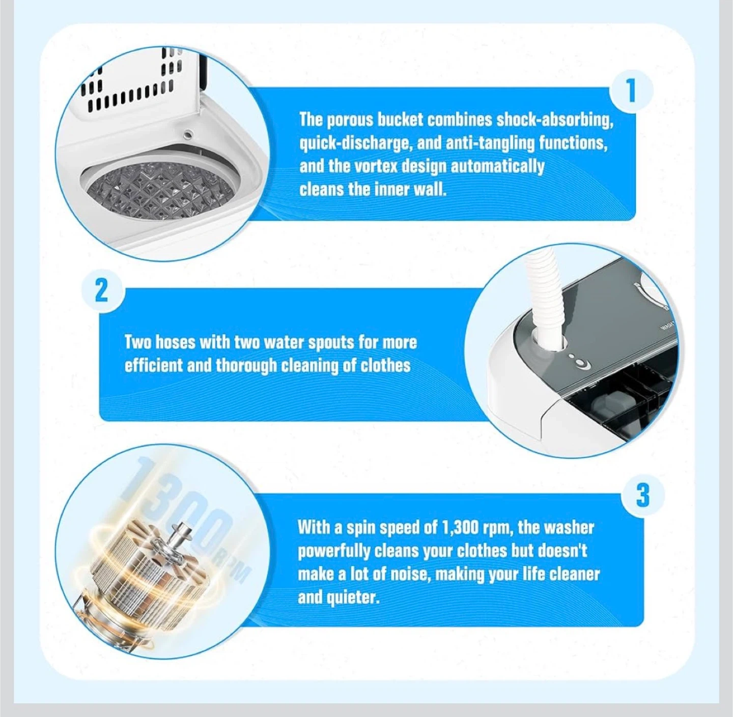 - Spinning tub: 6.4 lbs / 140 W