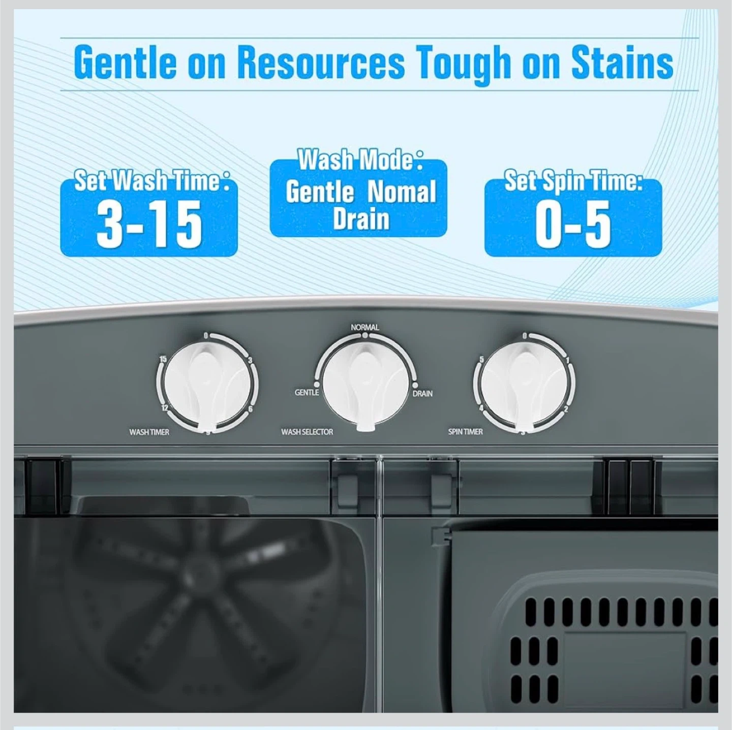 - Washing tub: 9.6 lbs / 250 W