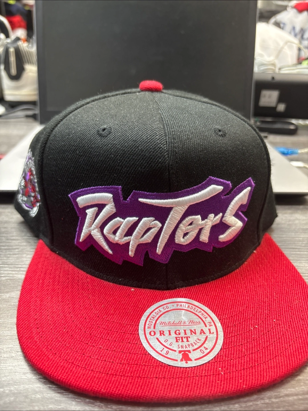 - Mitchell & Ness Raptors hat in red and black. Original Fit Snapback.