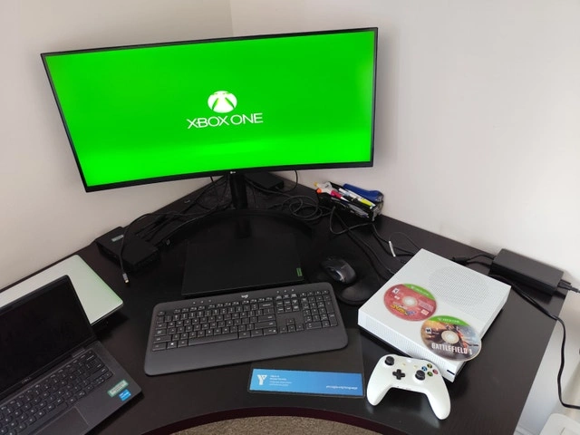 Rarely played Xbox One S, comes with original controller and all cables, all in great condition. Includes games like Battlefield 1, Naruto Shippūden: Ultimate Ninja Storm 4, Call of Duty: Modern Warfare, Resident Evil: Revelations 2, Call of Duty: Warzone, Rocket League, Hitman 3, The Sims 4, and more. Feel free to message if you have any questions!