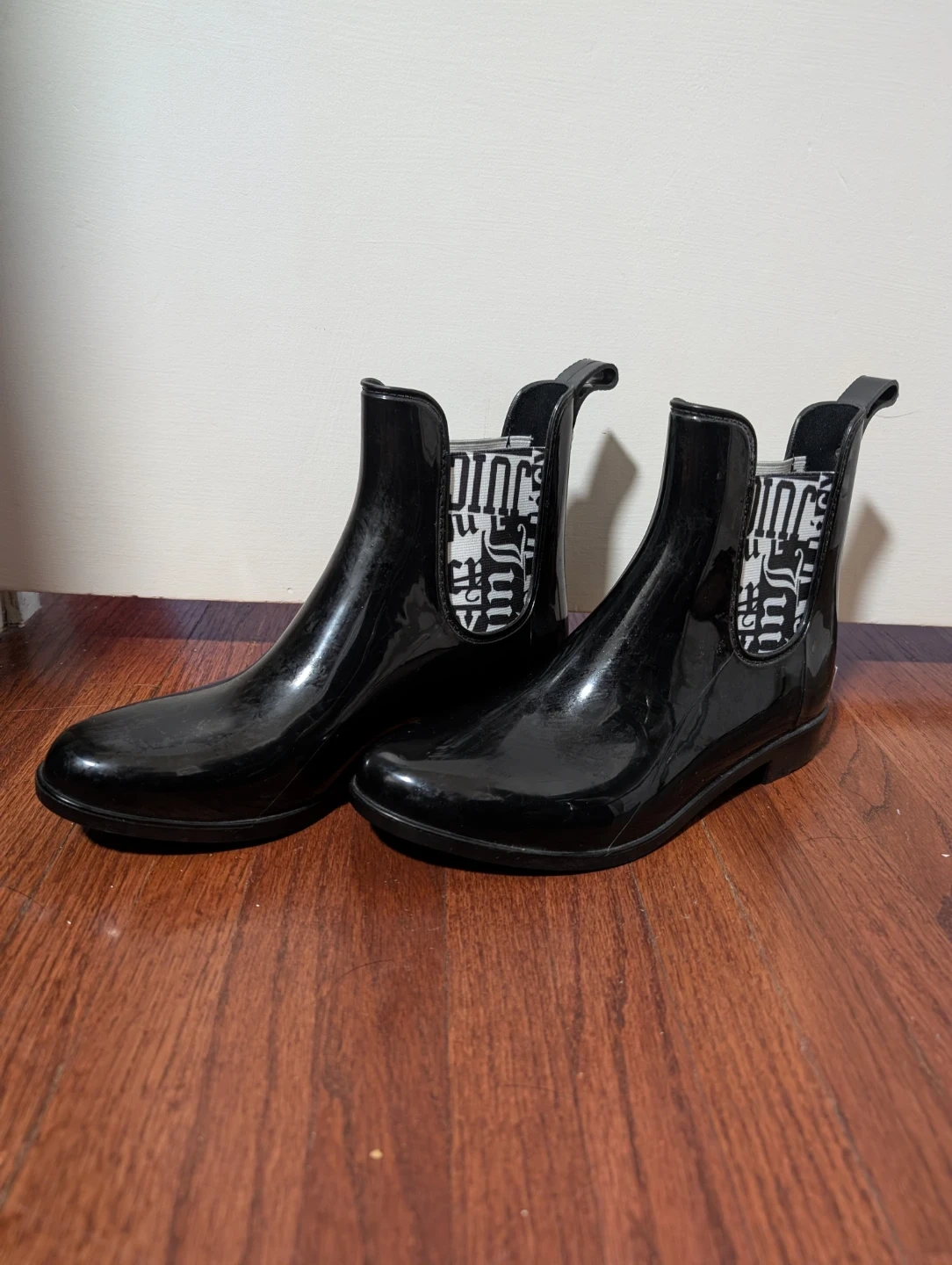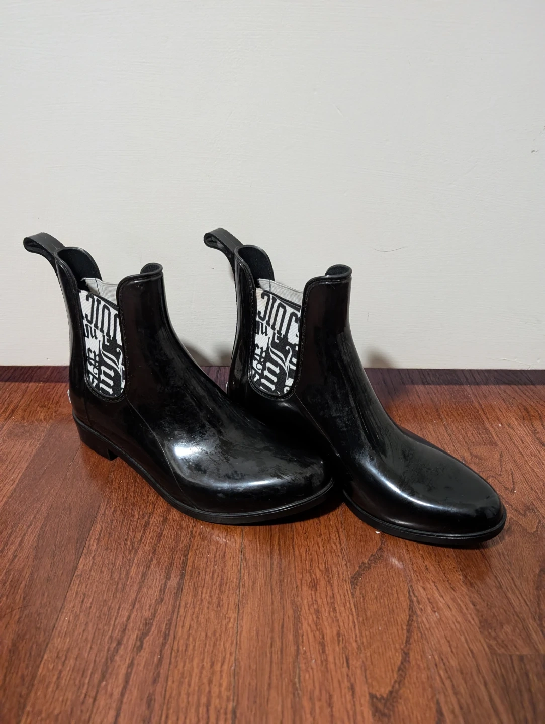 Selling a pair of Juicy Couture black rain boots! They're in great condition and ready for those rainy days. Perfect for adding a bit of style to your wet-weather wardrobe
