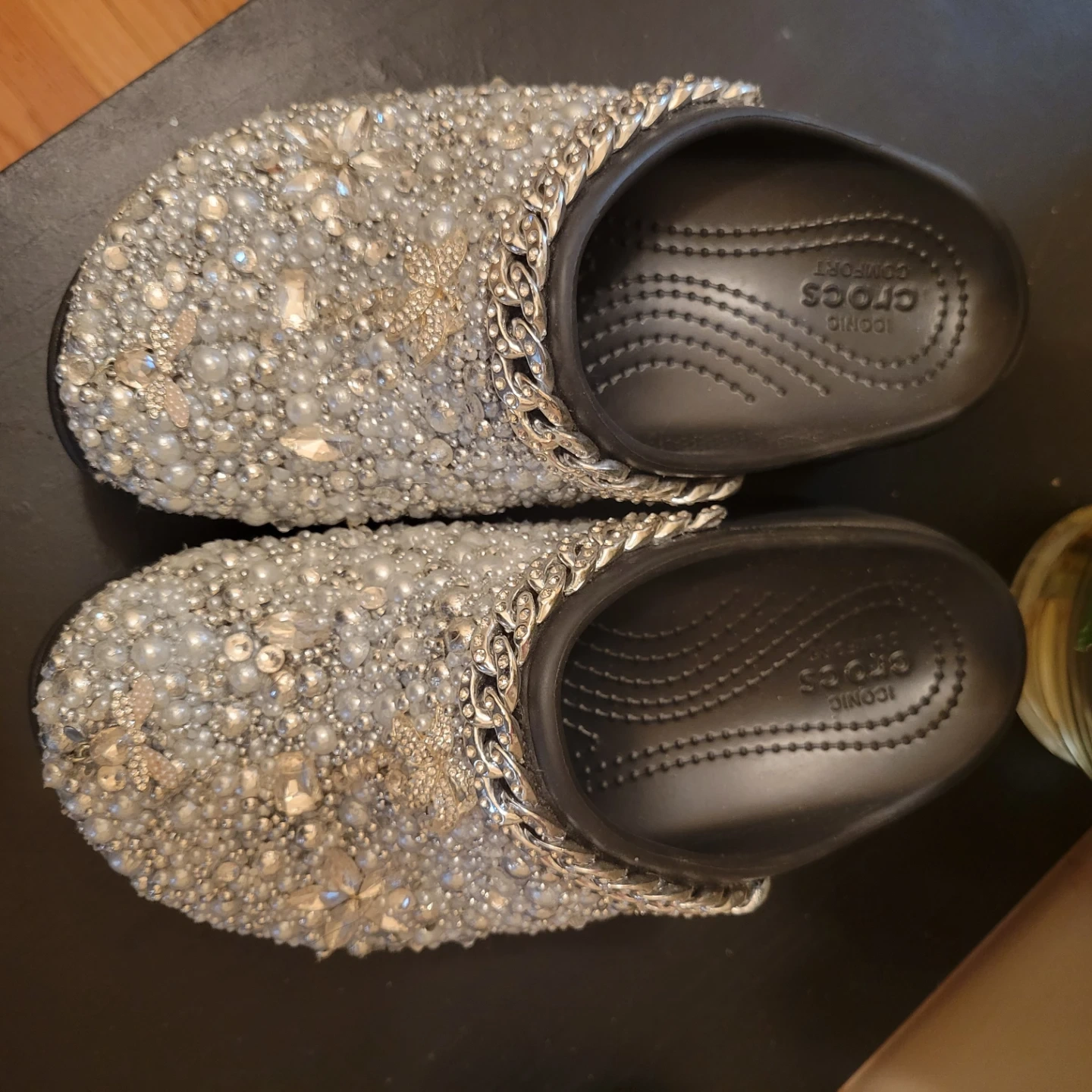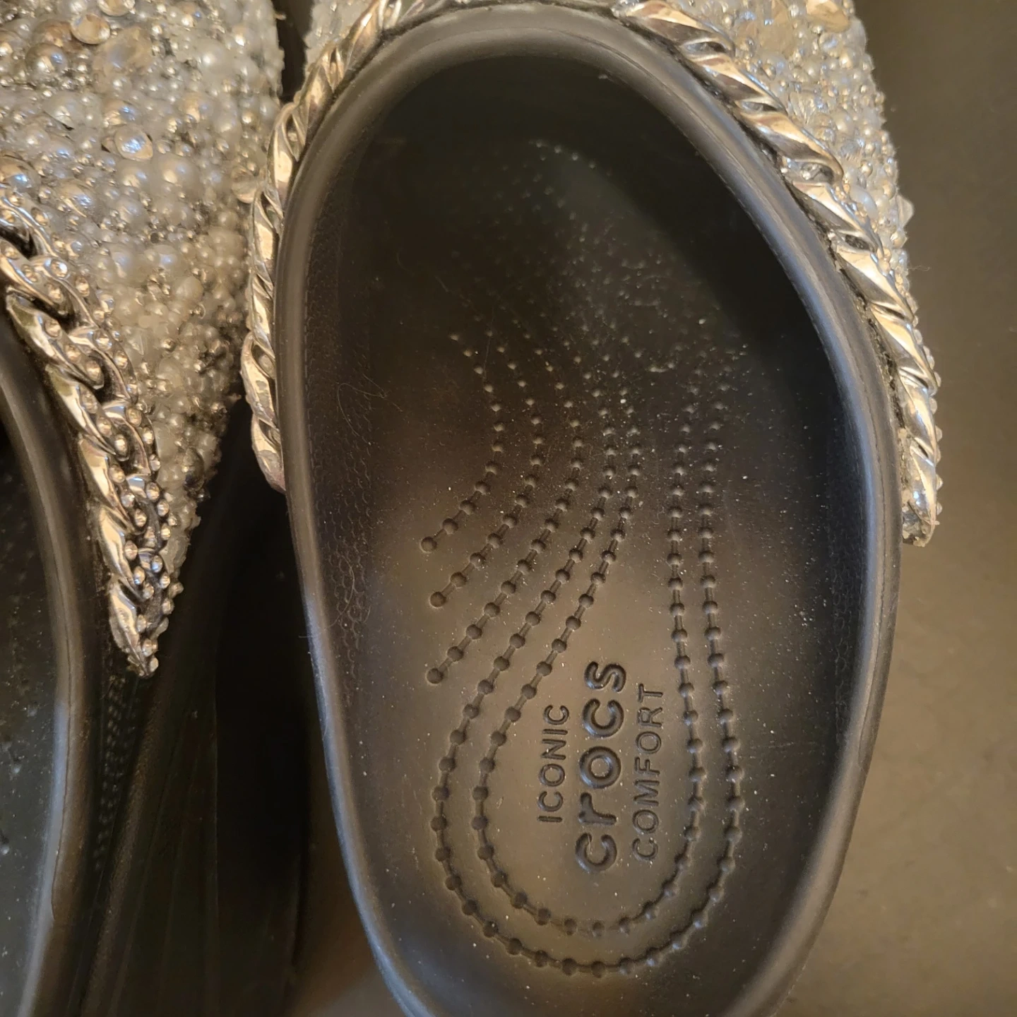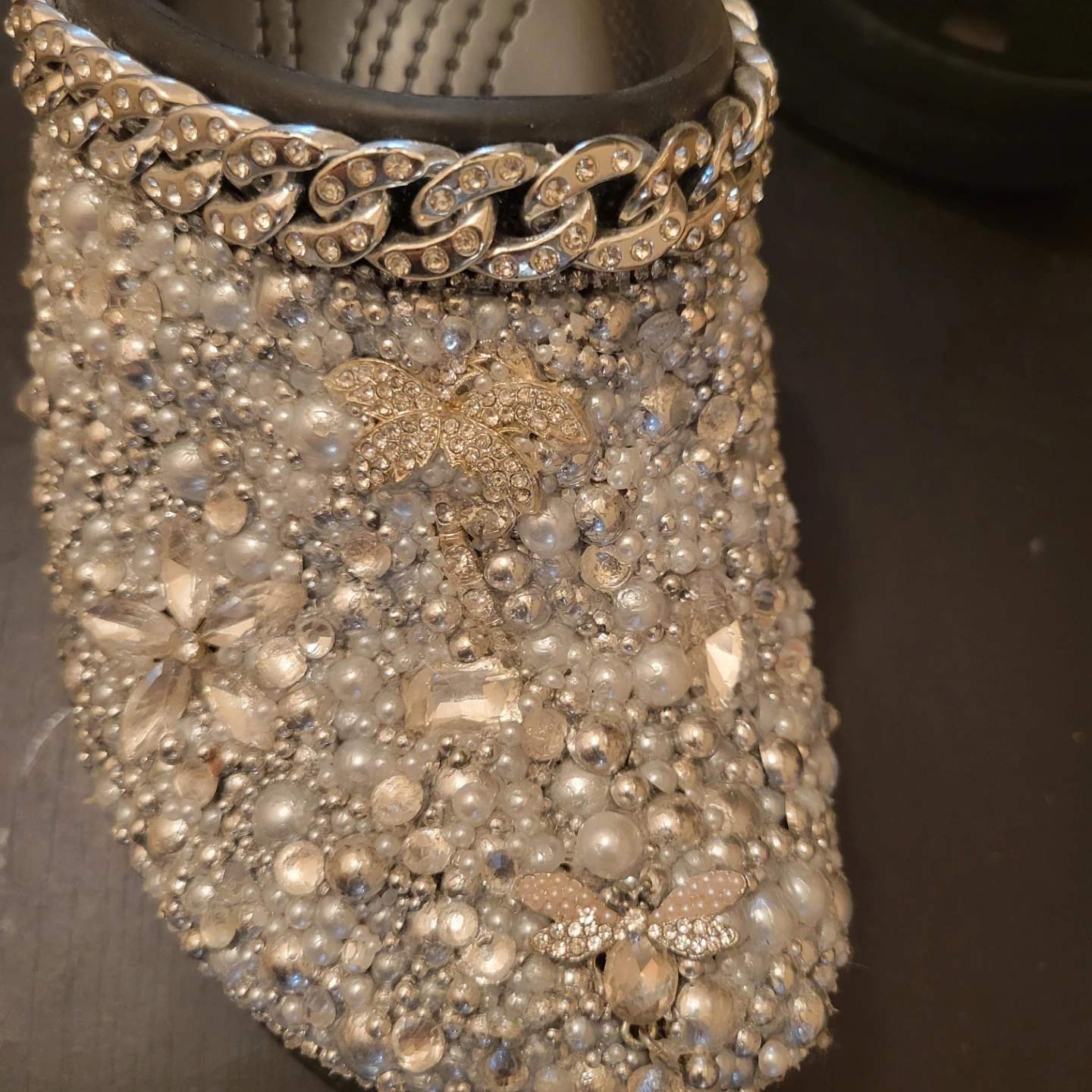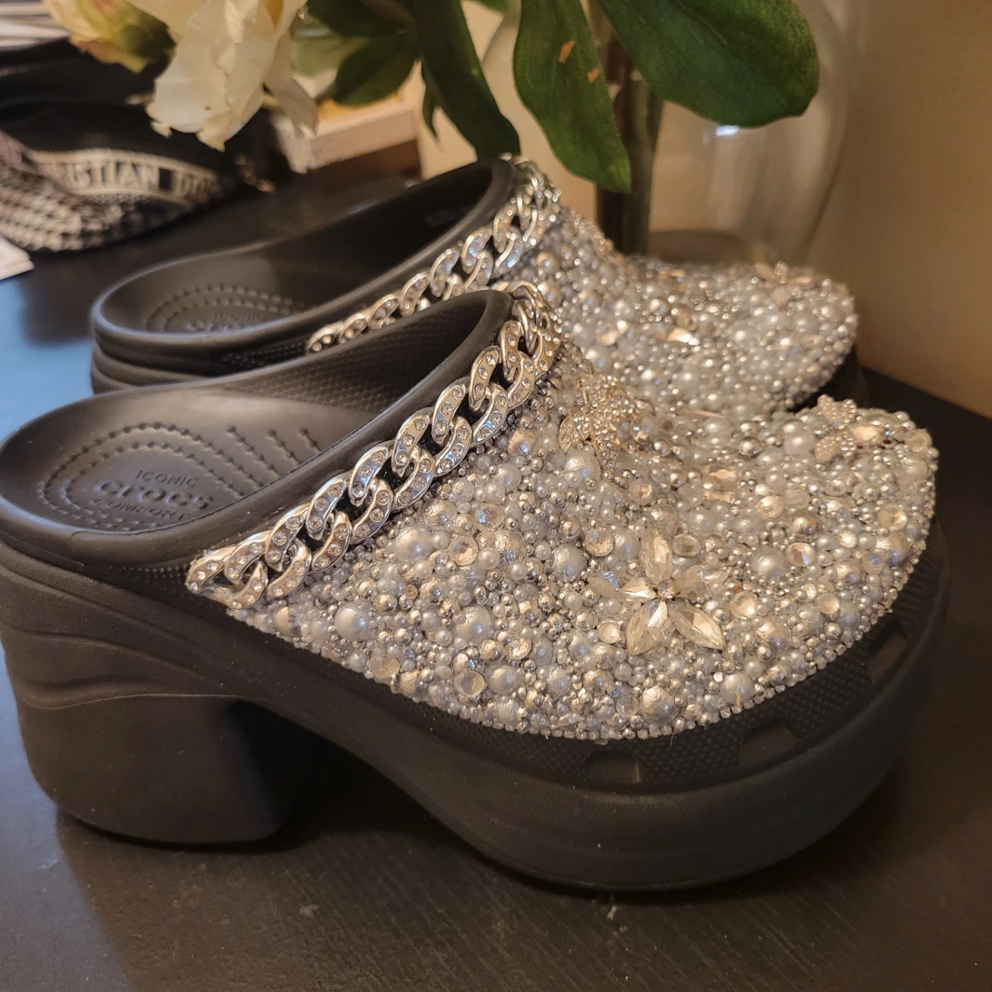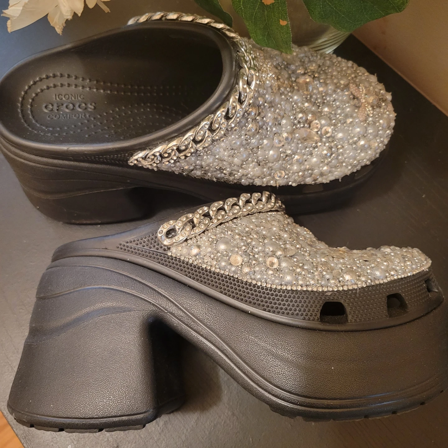 Buy & SellCrocs Platform ClogCrocs Platform Clog$100These platform Crocs are adorned with shimmering pearls, rhinestones, and a stylish silver chain. Handmade ConditionLike newSize7WHERE TO MEETBensoherstView MapSELLERNataliaBath Beach14615 reviews0 chats·0 favorites·12 viewsSEND CHAT TO SELLERHi Natalia! I’m interested in your listing.Hi Natalia! I’m interested in your listing.Get the Karrot app to chatSign In to chat