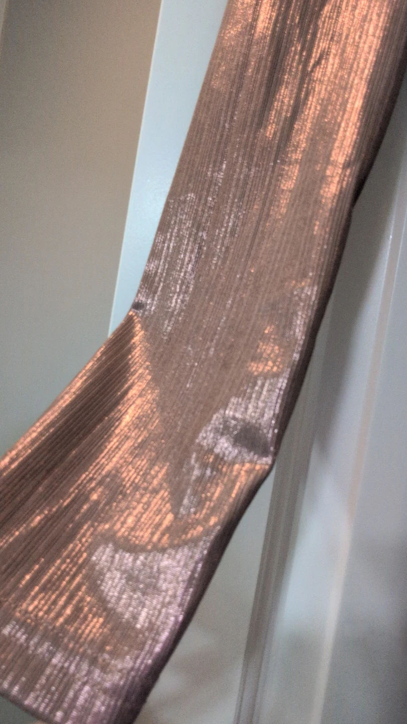 This Le Château dress features a stylish ruched design and a flattering one-shoulder silhouette. It's made from a shimmering pink fabric for a touch of glamour. The size is TTP/XXS. It does not show well on camera but the color is a shiny dusty rose gold, it is also very stretchy I would consider it a small. It is perfect for homecoming or cocktail event dress.