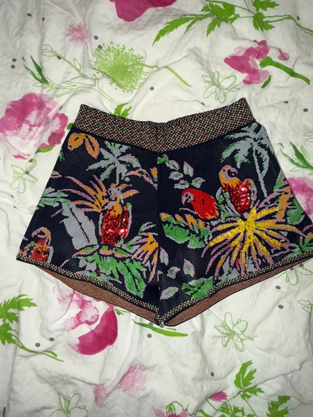 Tropical print woven shorts with sequins— Size S — $10