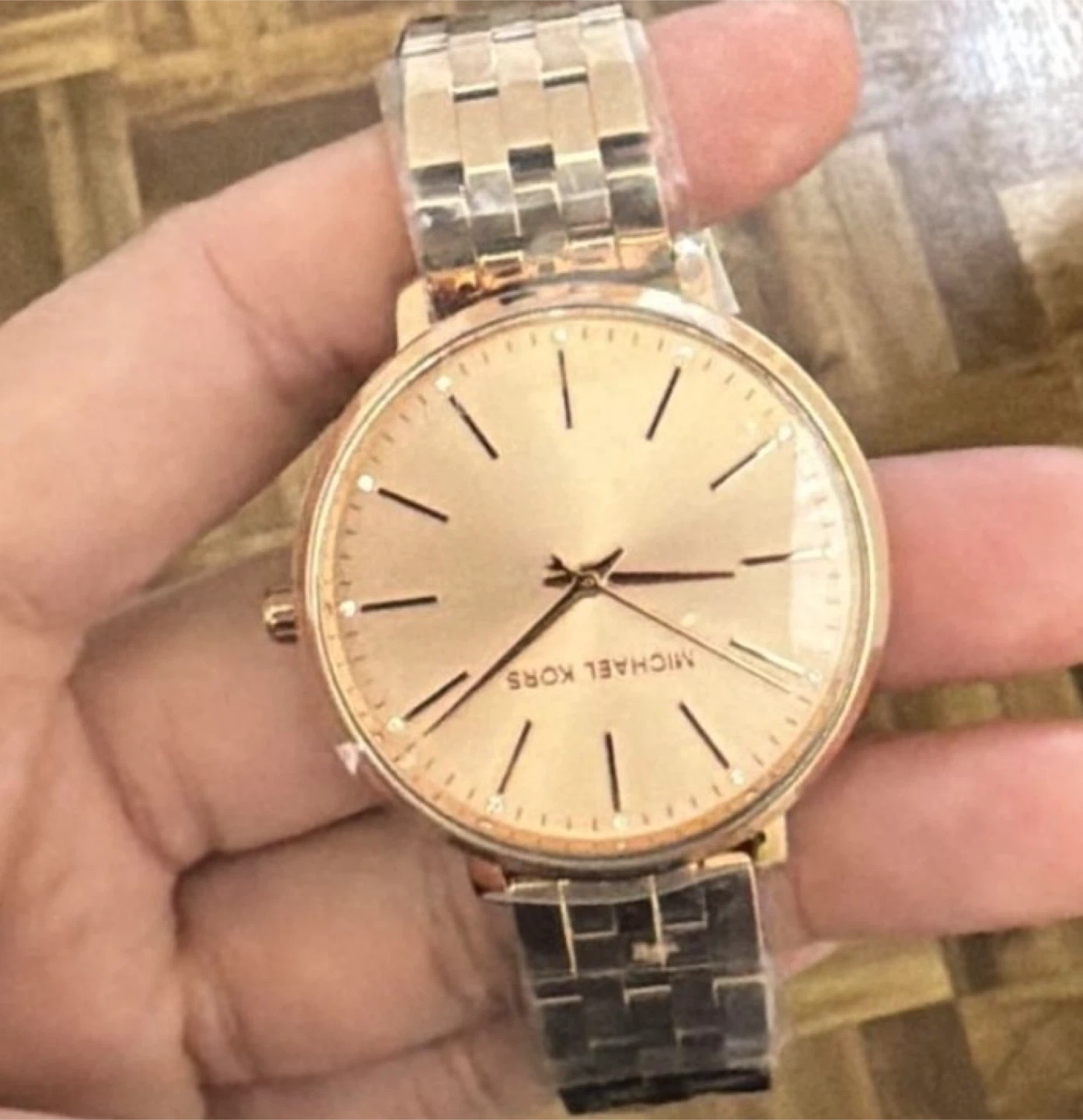 Lovely Michael Kors ladies watch. It's a rose gold tone with a classic dial and stainless steel band. This watch is water-resistant up to 50 meters. No box but it’s brand new