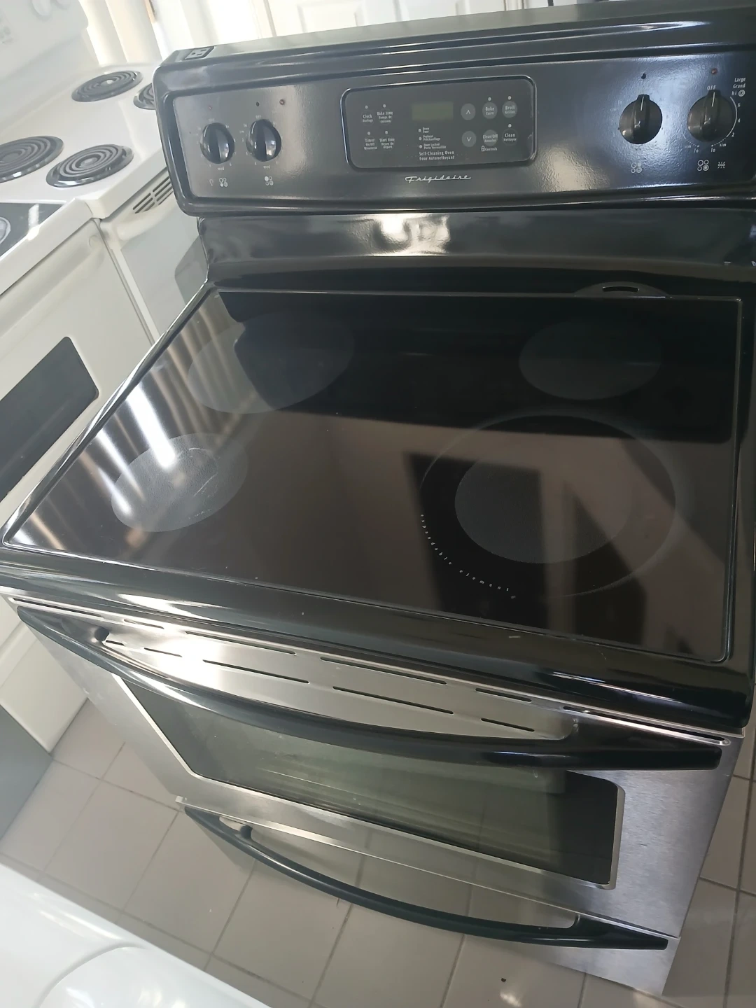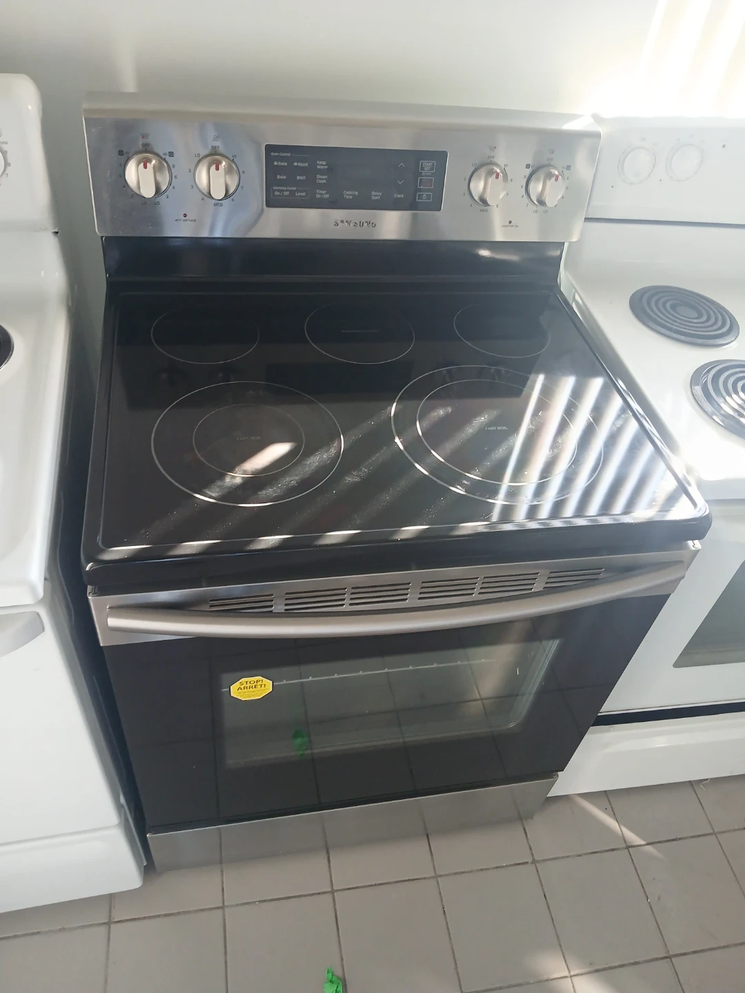 Selling a stainless steel electric range. It's in good condition and ready for a new kitchen! The oven interior looks clean and spacious, perfect for all your baking needs. If you're looking for a reliable and stylish range, this could be it