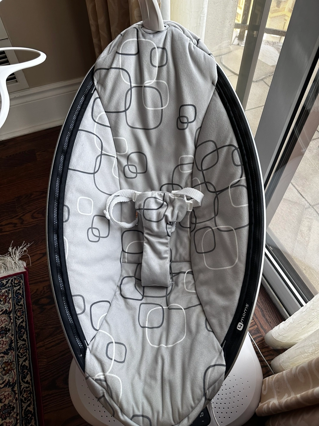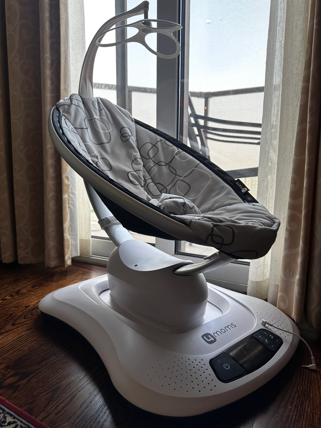 52Selling a gently used 4moms mamaRoo baby swing! It's in great condition and has been well taken care of. It features multiple motions and speeds to soothe your little one. The seat is a soft, plush material and it also has built-in sounds to help calm your baby. Perfect for newborns up to 25 pounds!