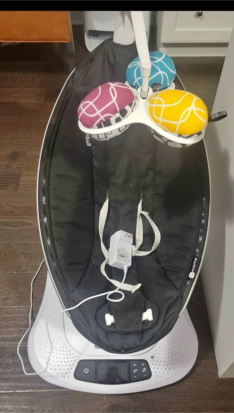 10Selling a 4moms MamaRoo baby swing! It's in great condition and comes with the power adapter. The seat has a black interior and colourful mobile.