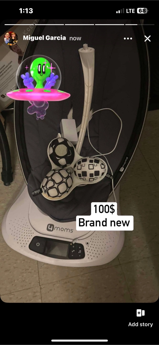 Baby swing, grey fabric, white base. Includes inserts. Good condition. As is in perfect working condition no BS don't waist my time offer 100$ and pick it up Or take the baby crib and baby bed for 225