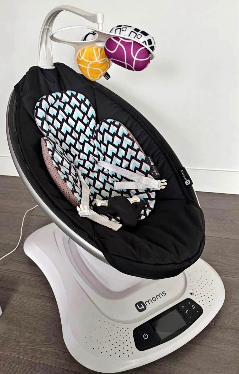 Selling a 4moms MamaRoo baby swing. It's in great condition and ready for a new little one! This swing has multiple motions and speeds to soothe your baby. It also has built-in sounds and the option to connect your phone to control the swing and play music