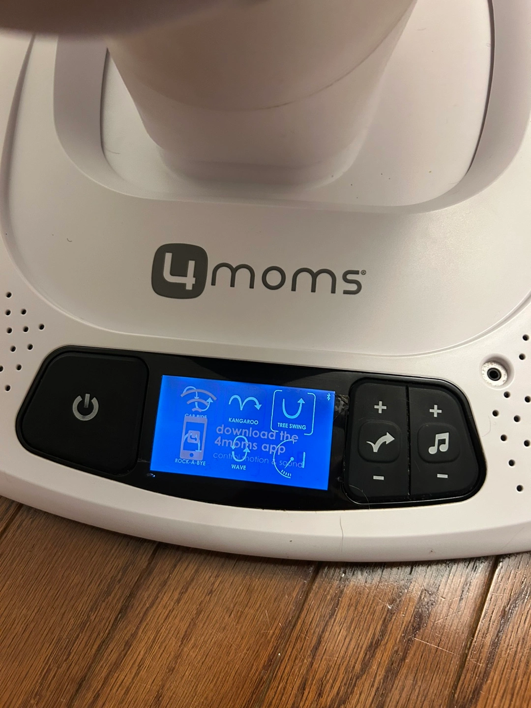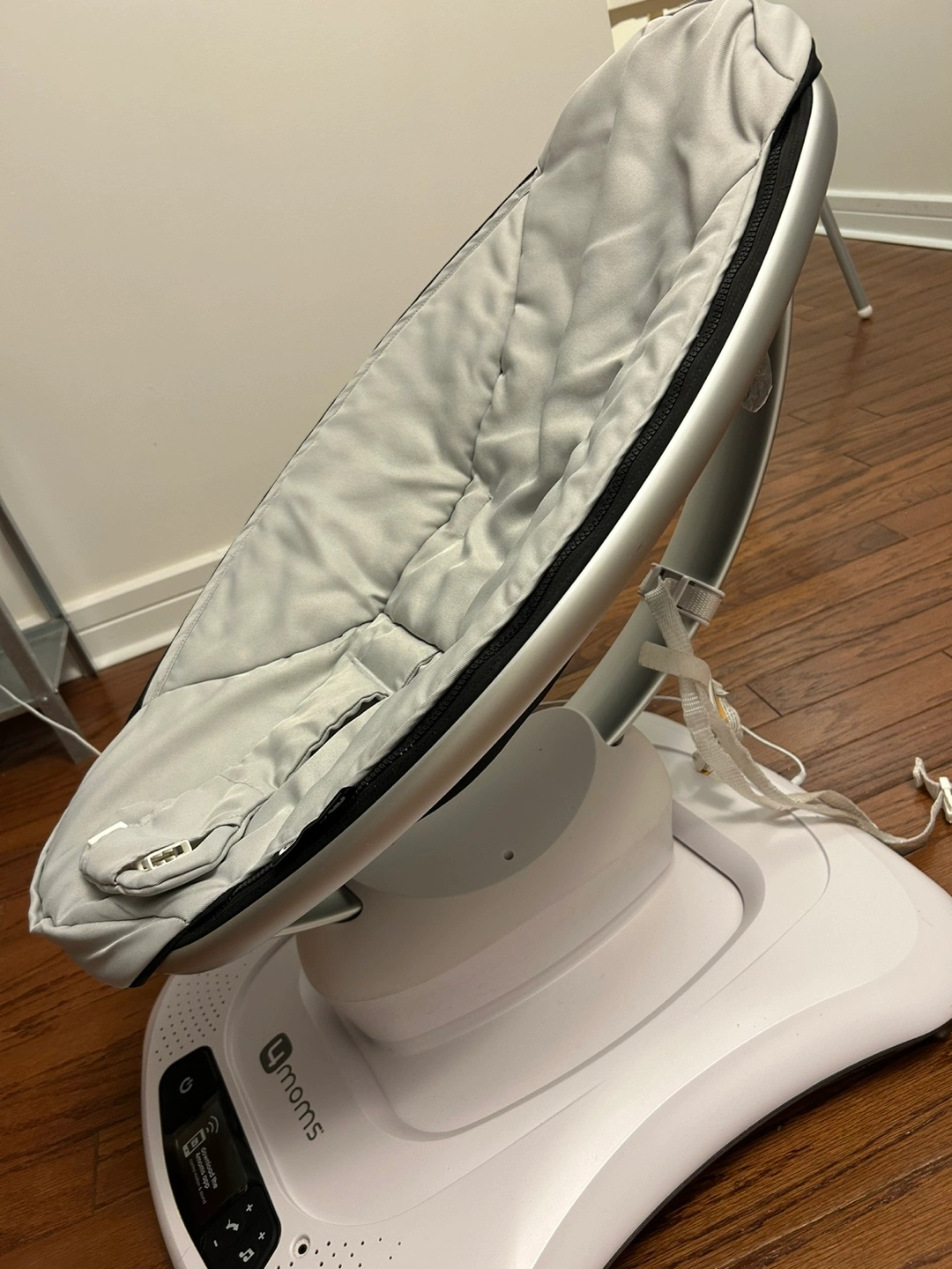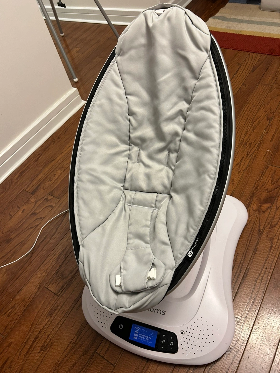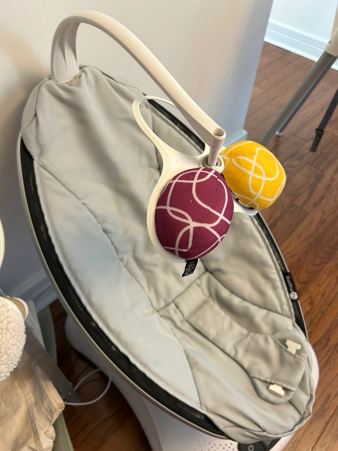 474moms mamaRoo baby swing in great condition. Grey fabric. Includes toy attachment. Control panel features multiple settings. One ball is missing