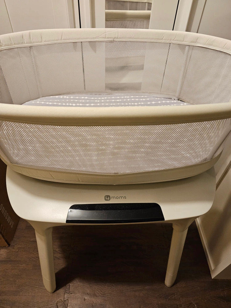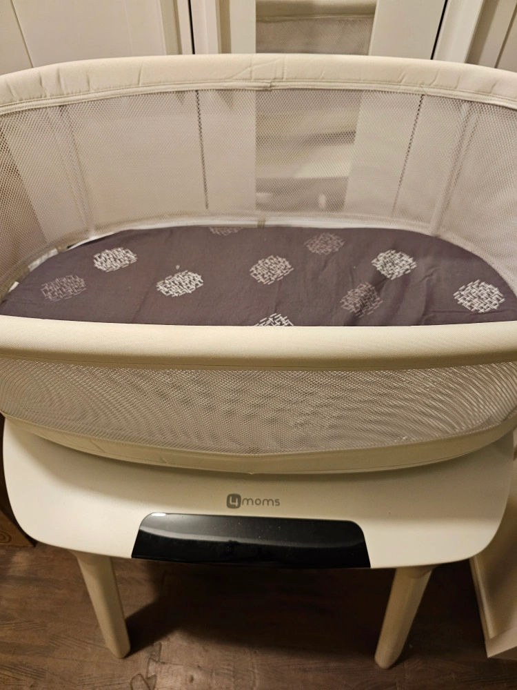 Selling a 4moms MamaRoo Sleep Bassinet. It's in great shape and ready for a new home! This bassinet features a variety of motions and sounds to help soothe your little one to sleep. The grey and white colour scheme is neutral and will fit in with any nursery decor Comes with 6x mamaRoo sleep waterproof bassinet sheets (3x grey and 3x green)