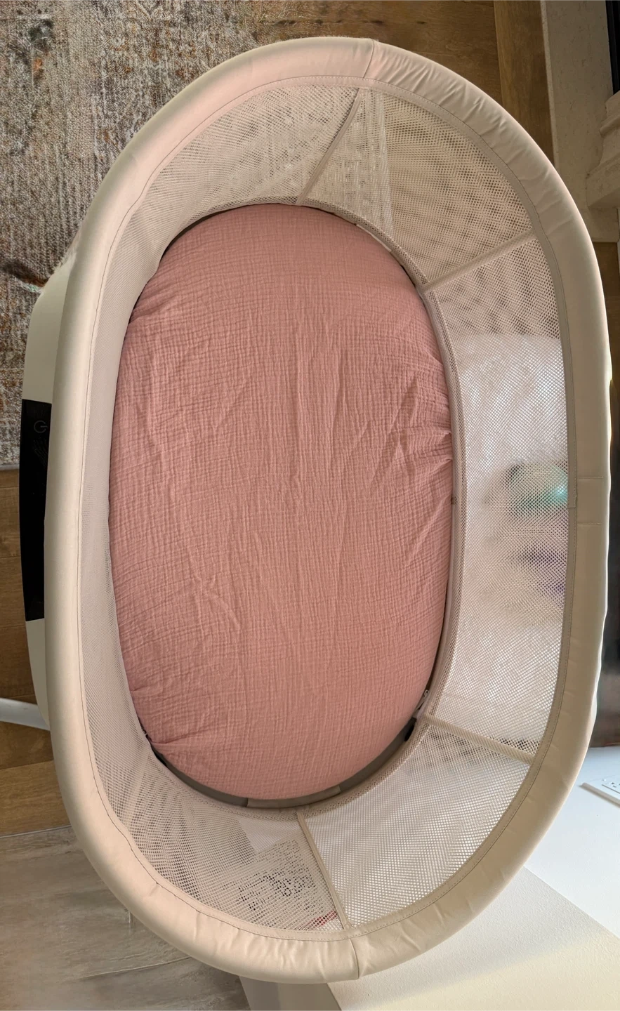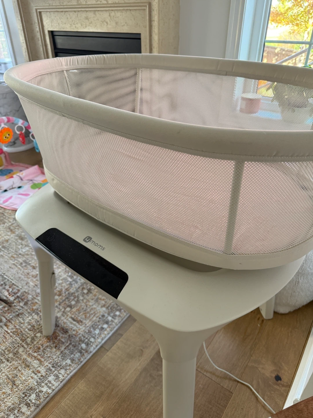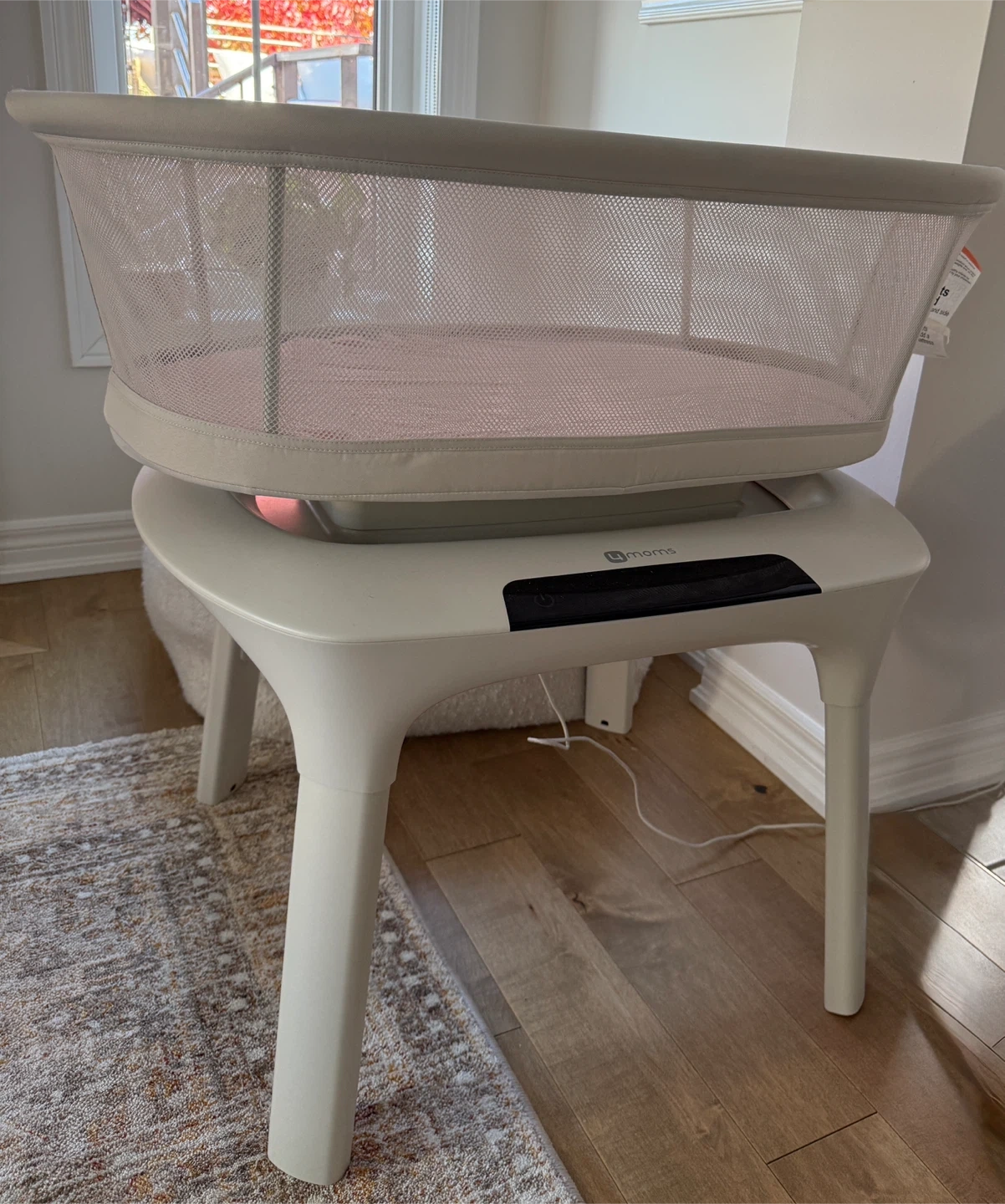 33Selling a 4moms MamaRoo Sleep Bassinet in excellent condition! It features: - Firm, flat sleep surface - Mesh sides for visibility and airflow - Safe-sleep, water-resistant mattress - 5 parent-inspired motions, 5 speeds, and 4 calming sounds - Can be controlled remotely via the 4moms app Dimensions: - With Leg extenders: 34" x 24" x 39" - Without Leg extenders: 34" x 24" x 34.5" Retailed for $600 Lightly used bassinet - our baby refuses to sleep in it so has been mostly unused. We got it 2nd hand from a friend who also barely used. We deep cleaned before using. Includes original mamaroo sheets (2) and cotton muslin sheets (2) Includes leg lifters to help with reflux Works perfect, no issues. No box Pickup in Kleinburg