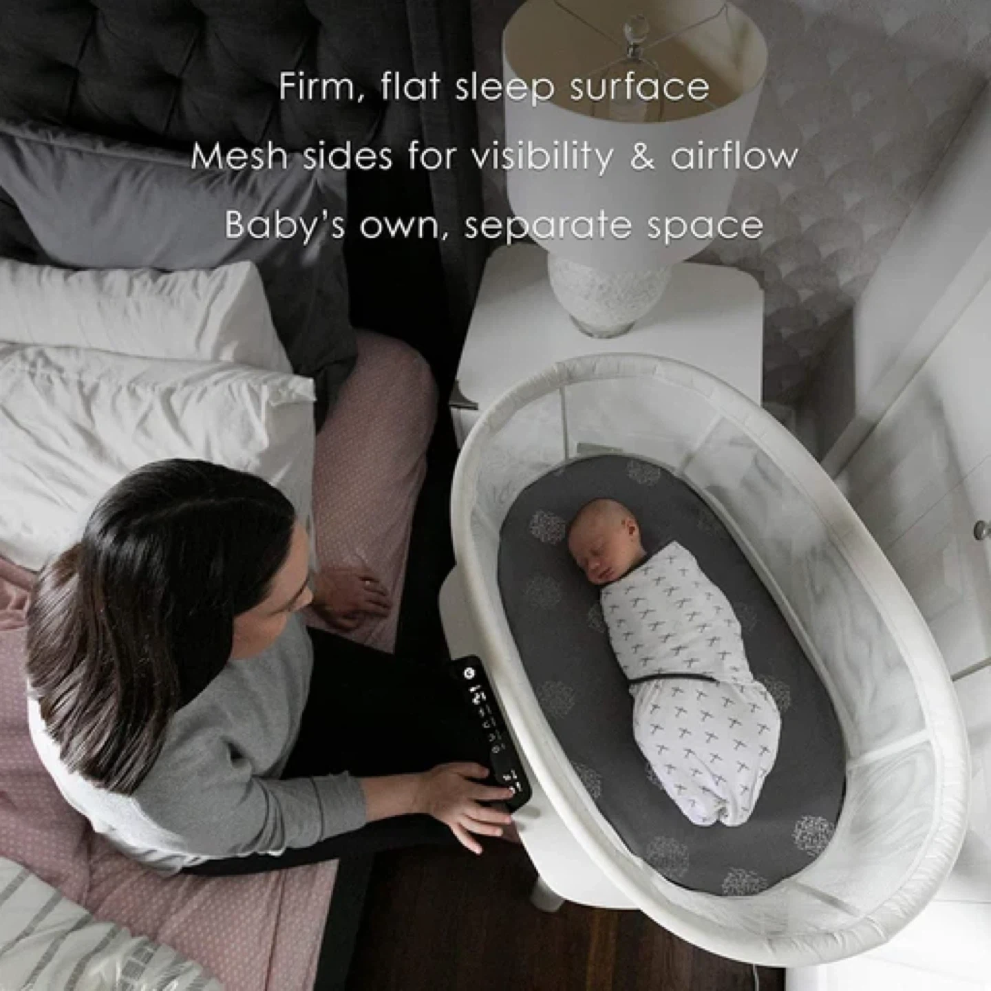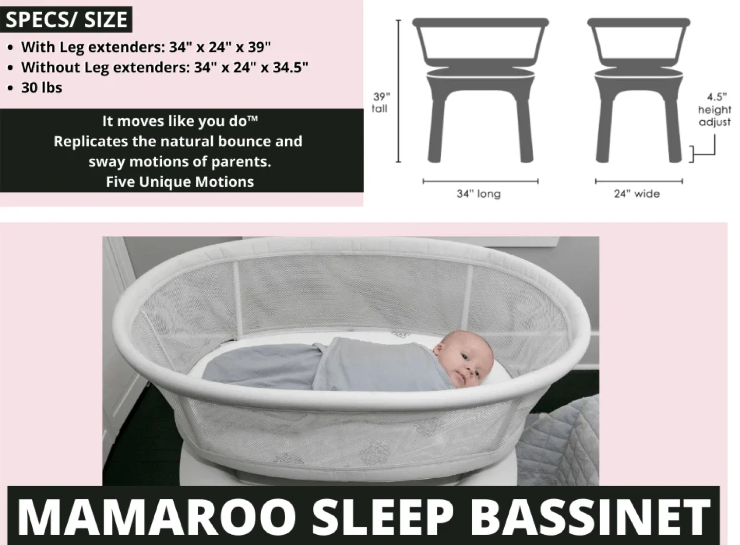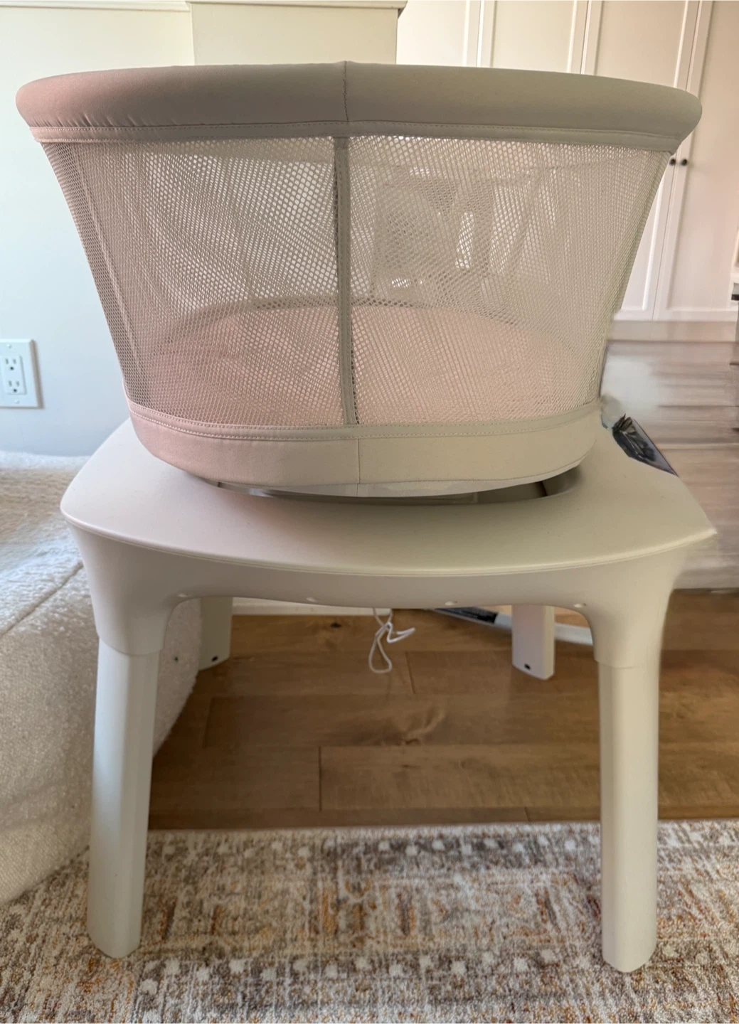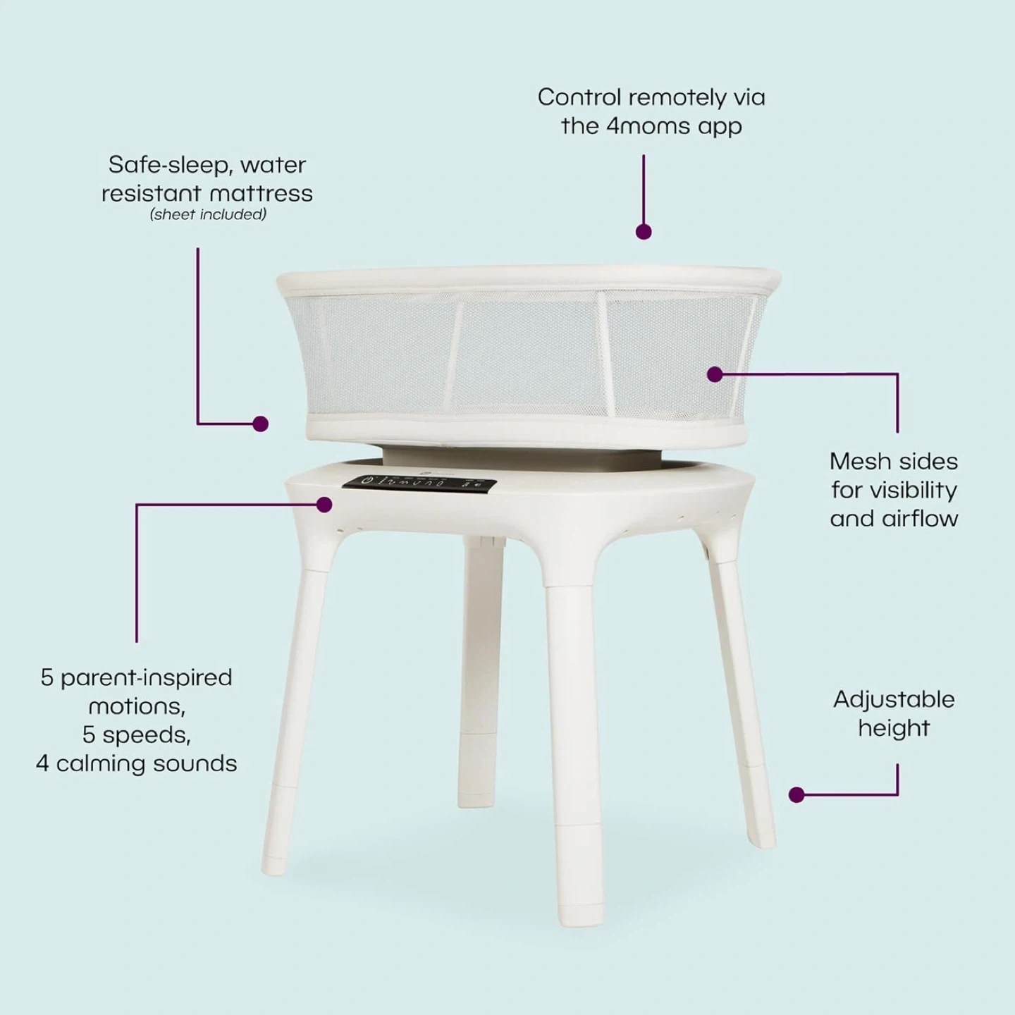 33Selling a 4moms MamaRoo Sleep Bassinet in excellent condition! It features: - Firm, flat sleep surface - Mesh sides for visibility and airflow - Safe-sleep, water-resistant mattress - 5 parent-inspired motions, 5 speeds, and 4 calming sounds - Can be controlled remotely via the 4moms app Dimensions: - With Leg extenders: 34" x 24" x 39" - Without Leg extenders: 34" x 24" x 34.5" Retailed for $600 Lightly used bassinet - our baby refuses to sleep in it so has been mostly unused. We got it 2nd hand from a friend who also barely used. We deep cleaned before using. Includes original mamaroo sheets (2) and cotton muslin sheets (2) Includes leg lifters to help with reflux Works perfect, no issues. No box Pickup in Kleinburg