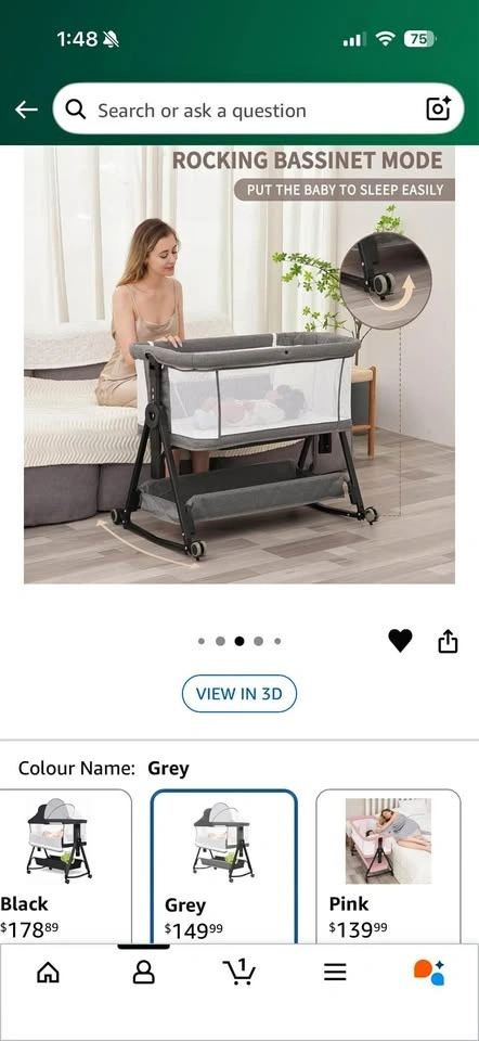 Large Baby Bassinet, 3 in 1 Bedside Bassinet, 7 Height Adjustmen