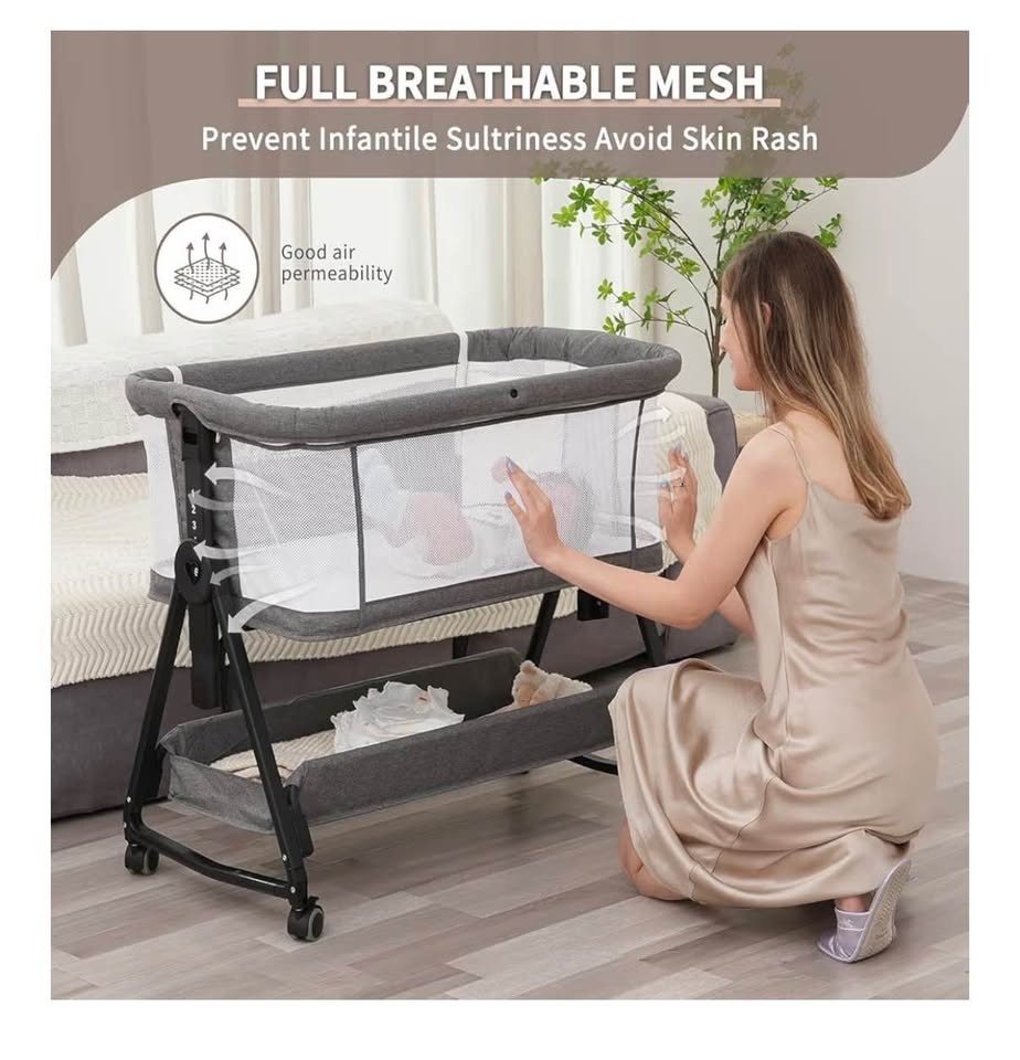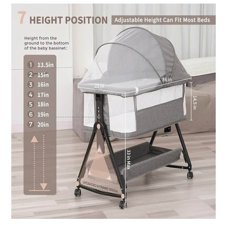 Large Baby Bassinet, 3 in 1 Bedside Bassinet, 7 Height Adjustmen