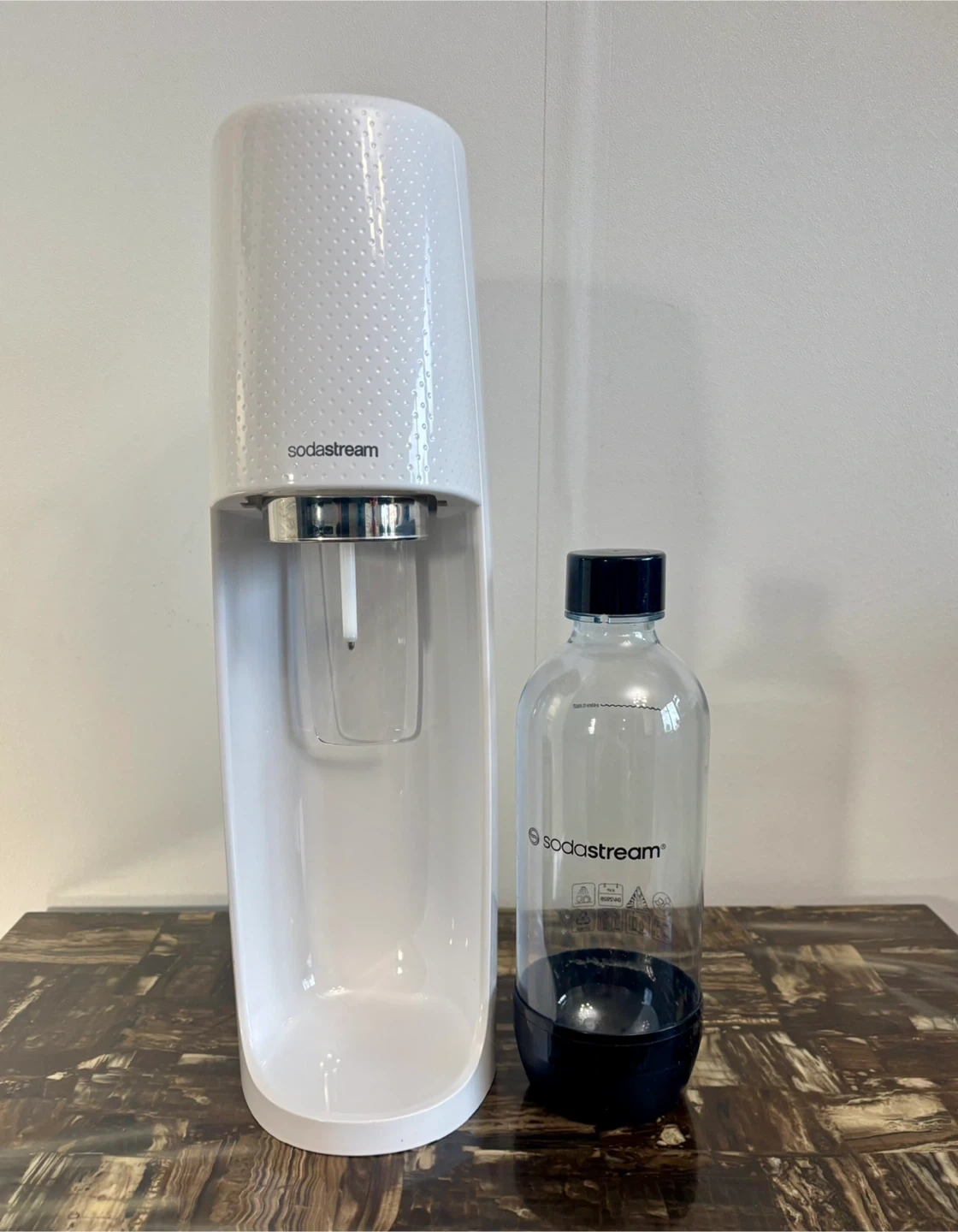 Buy & SellSodaStream Sparkling Water Maker White with BottleSodaStream Sparkling Water Maker White with Bottle$20White SodaStream machine for making sparkling water. Comes with one reusable plastic bottle and a CO2 cylinder installed.BrandSodaStreamWHERE TO MEETCheck LocationView MapSELLERverifiedJohnOxford1798 reviews0 chats·1 favorites·7 viewsSEND CHAT TO SELLERHi John! I’m interested in your listing.Hi John! I’m interested in your listing.Get the Karrot app to chatSign In to chat
