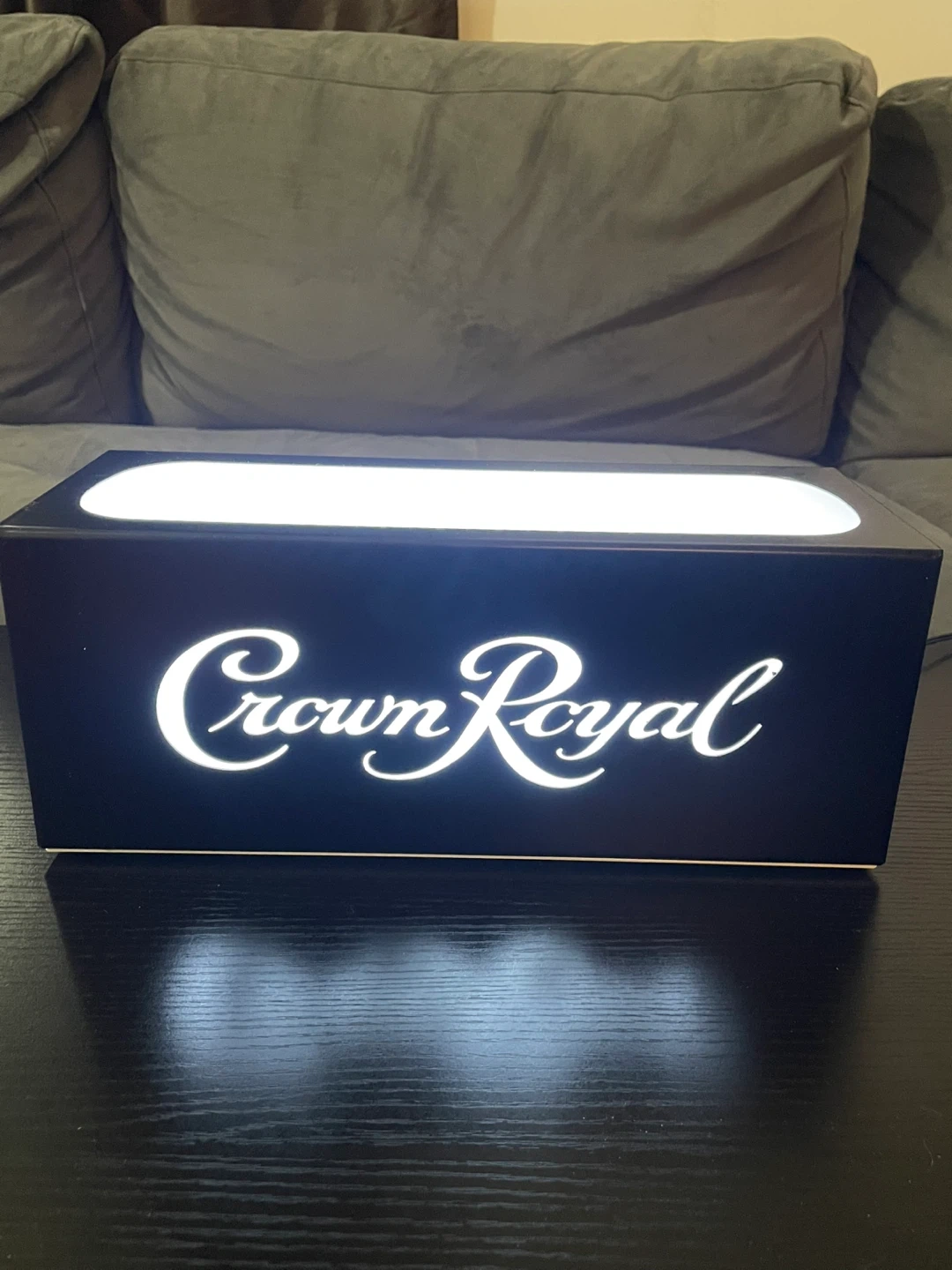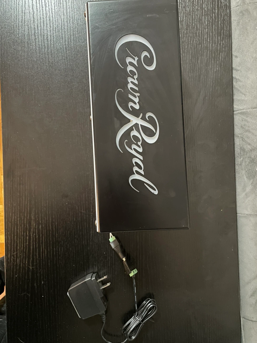This Crown Royal lighted display box has the brand logo illuminated. It comes with a power adapter. Perfect for a bar or display area!