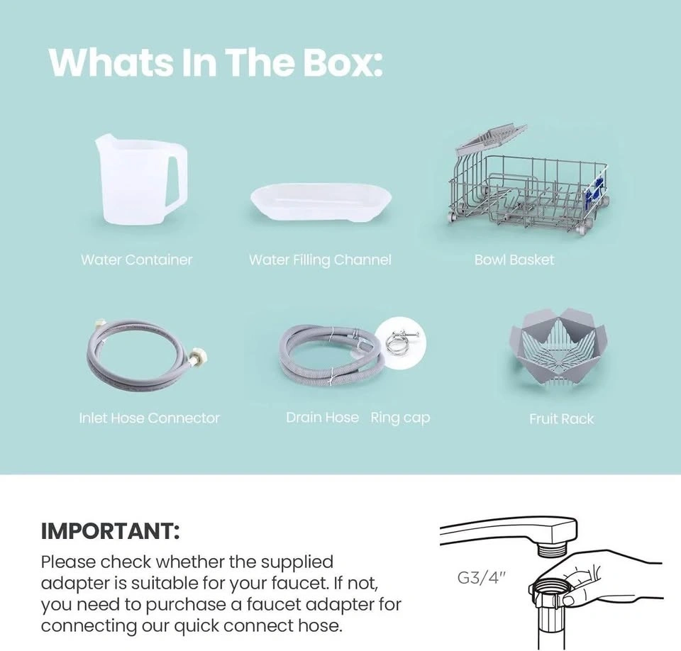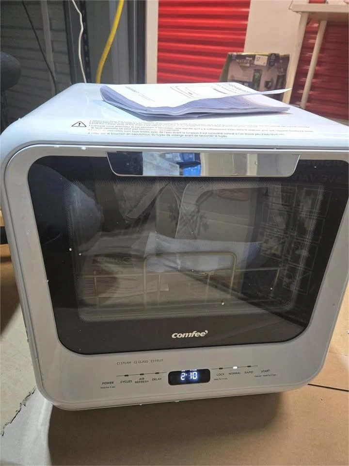 No Installation Needed: Adding water manually in the 5L built-in water tank, you can put the countertop dishwasher in any suitable place without connecting to tap water. This mini dishwasher can also be hooked to a kitchen faucet with the included water hose (Faucet Adapter Needed) Ultra-Compact Design: The compact dishwasher can wash 30+ items (Max to 10" plates) at a time while occupying a small space (16.5 x 17.1 x 17.1 inches), ideal for apartments, small kitchens, dorms, boats, campers& RVs. (Note: COMFEE' dishwashers are tested at the factory before being shipped, so it's normal if your new tabletop dishwasher has some water inside) 5 Programs & 1 Function: NORMAL, RAPID, STEAM, FRUIT, GLASS washing programs, and AIR REFRESH extra drying mode meet all your daily needs. Note: use the standard dishwasher powders or detergents to get the best cleaning results. (No detergent is needed for the FRUIT program, and RAPID just needs half of the standard quantity. Regular liquid dish soap will cause dishwasher problems) Upgraded 192 STEAM & Dual Spray: The STEAM program includes 162 Rinsing and max to 192 STEAM, easily removing stuck-on and dried food particles than regular programs. It also ensures thorough cleaning of baby bottles. The upper and lower spray arms direct water toward the corners of every dish, turning dirty dishes sparkling clean Extra Drying & Stay Fresh: Circulation of AIR REFRESH removes moisture and odor, keeping your plates and machine dry and fresh for a long time. The function is enabled by default and you can also inactivate the function if unnecessary.
