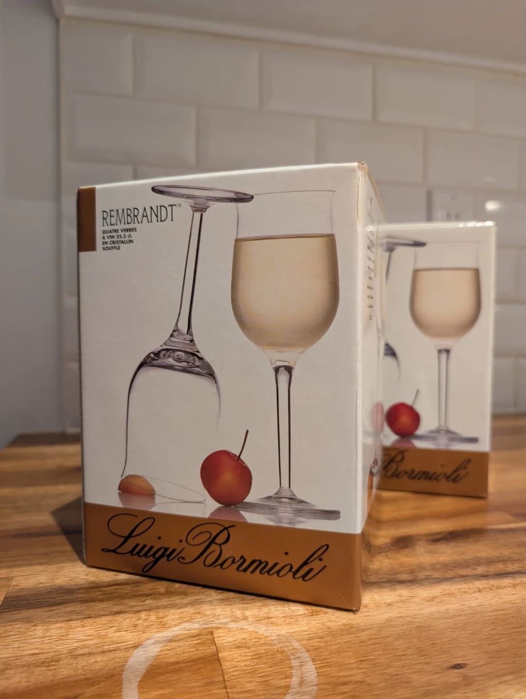 Selling a set of six Luigi Bormioli Rembrandt wine glasses! They are made with flawlessly designed crystal that enhances its beauty, a classic in its own time. Comes in the original box!