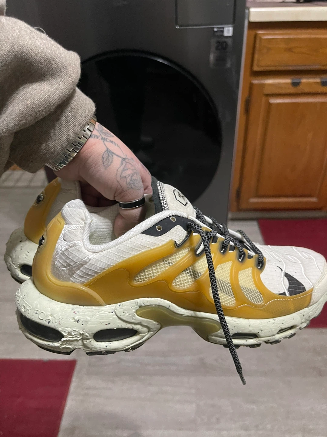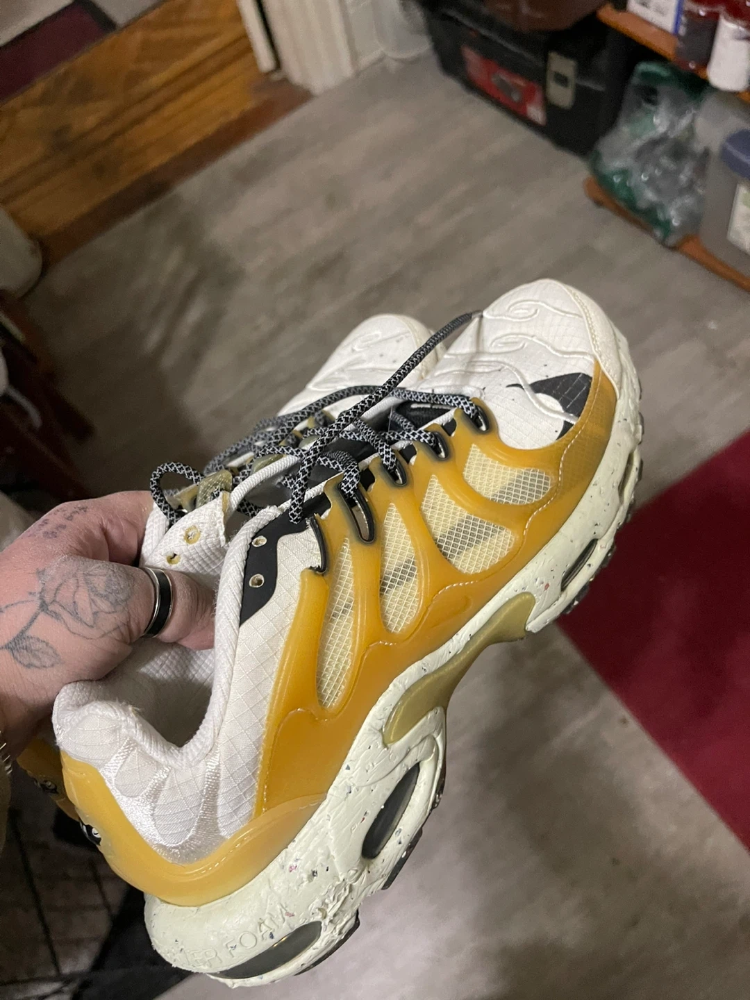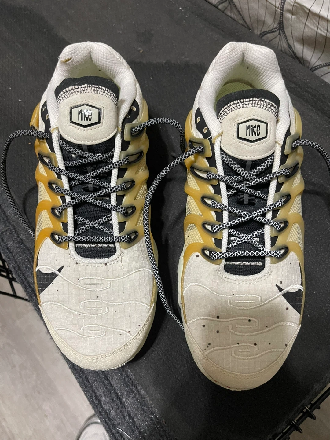 Selling a pair of Nike Terrascape Plus sneakers! They have a unique design and are in good condition. Perfect for casual wear or workouts… Brand new never worn have a reflective glow Nike Airmaxs Craters size 8 white black sail white reflective sides multi color bottom