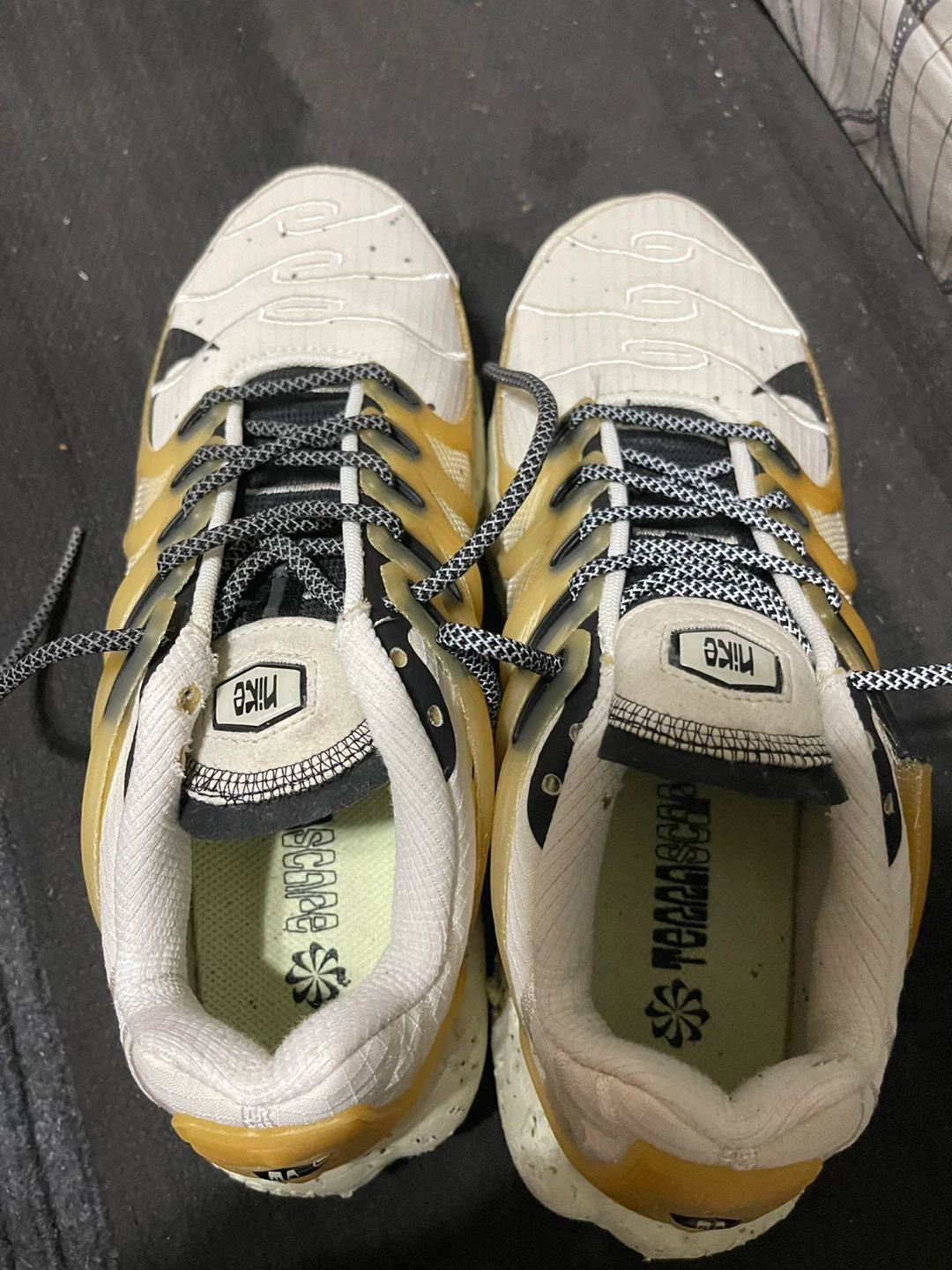 Selling a pair of Nike Terrascape Plus sneakers! They have a unique design and are in good condition. Perfect for casual wear or workouts… Brand new never worn have a reflective glow Nike Airmaxs Craters size 8 white black sail white reflective sides multi color bottom