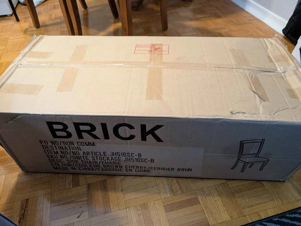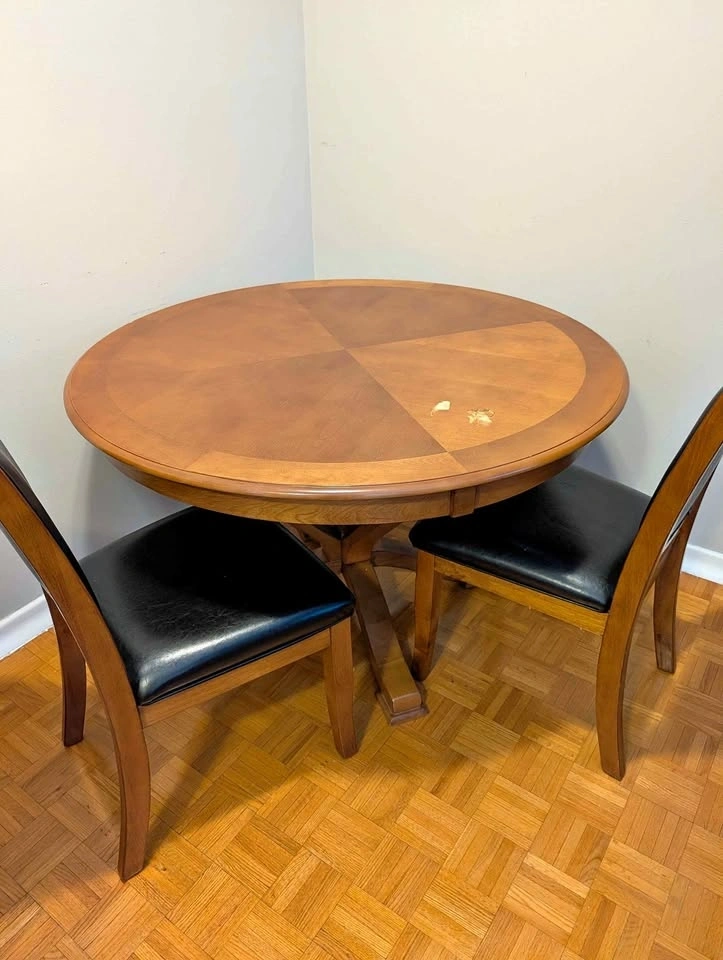 Dining table with 4 chairs. 2 of the chairs are still in the box, unused. Chairs are in good shape.