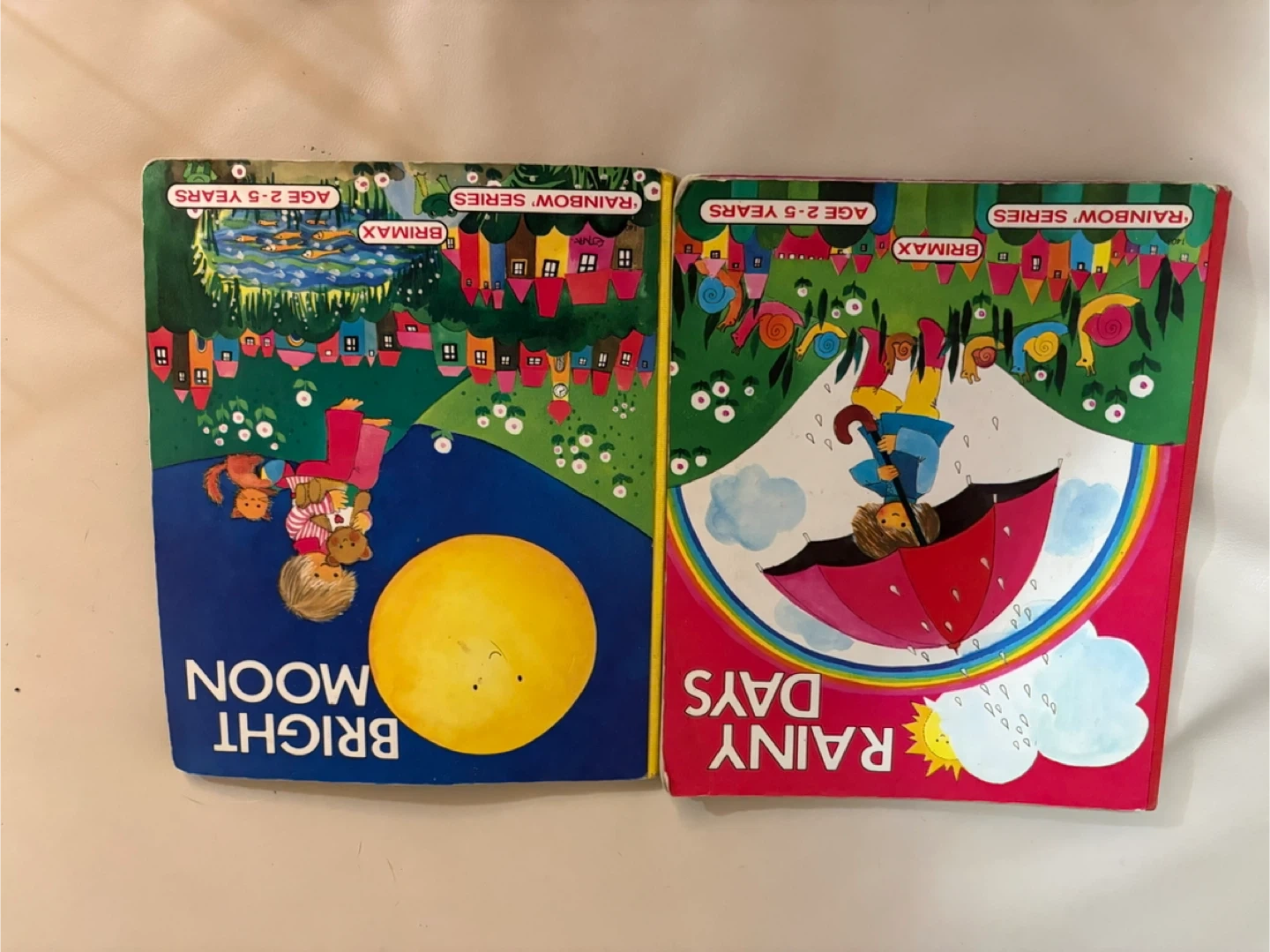 Selling two Brimax books from the Rainbow Series for ages 2-5 years. One is titled 'Bright Moon' and the other is 'Rainy Days'. They're in good condition and ready for a new reader $6