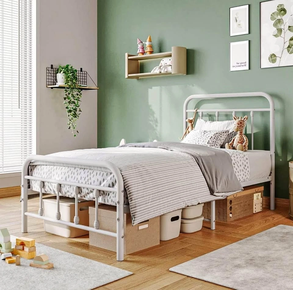 White Twin Metal Frame Bed