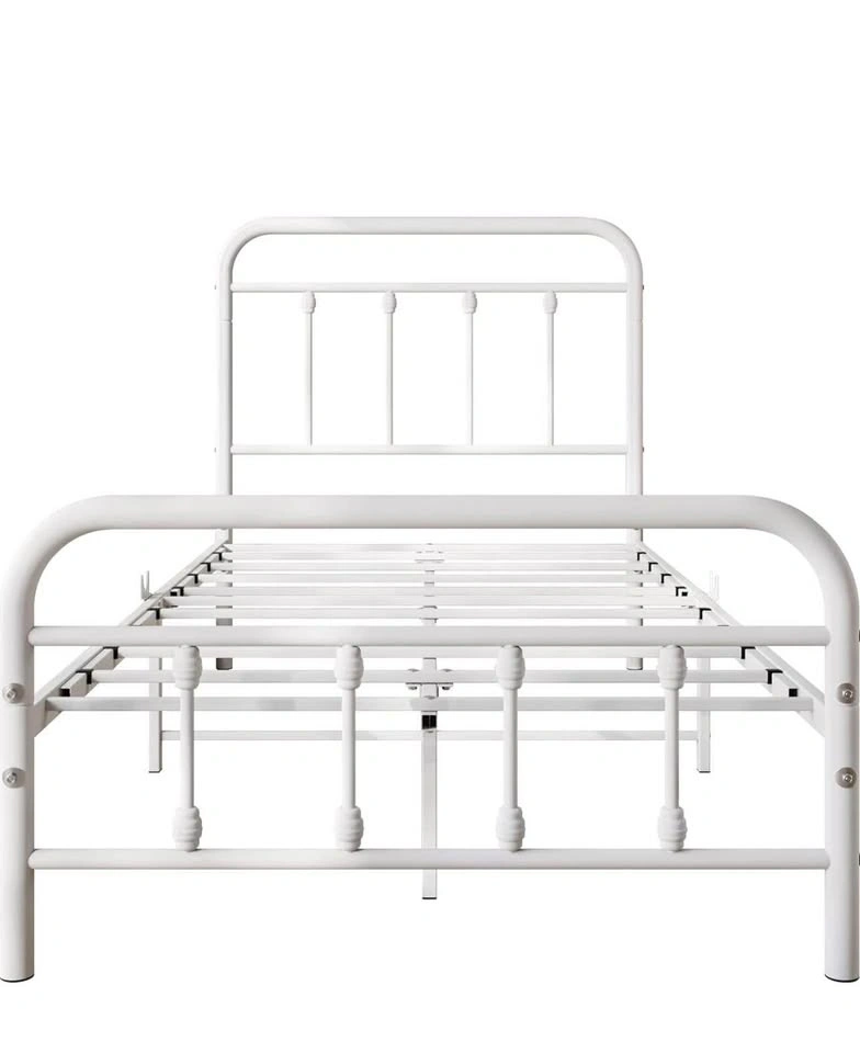 White Twin Metal Frame Bed